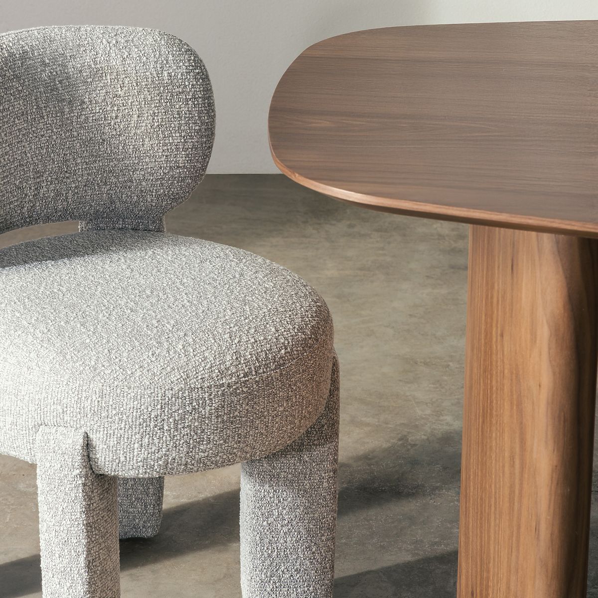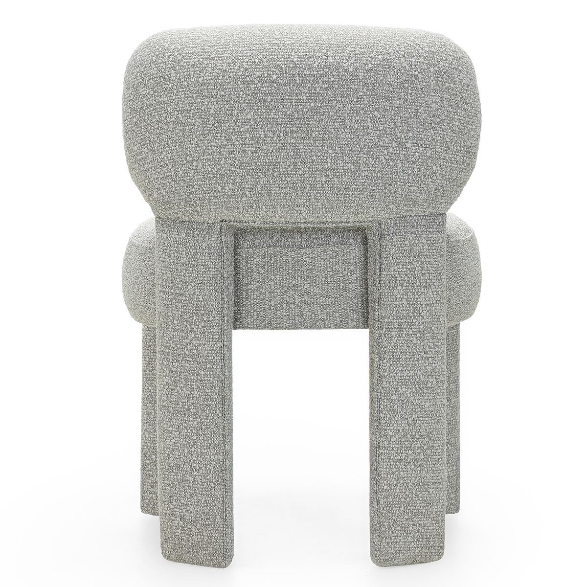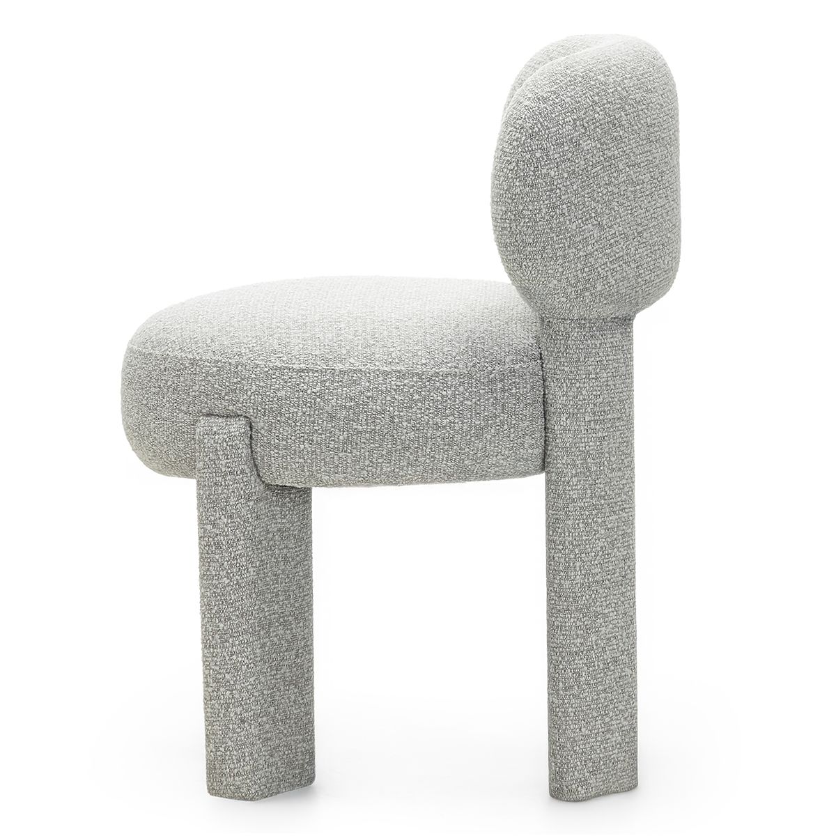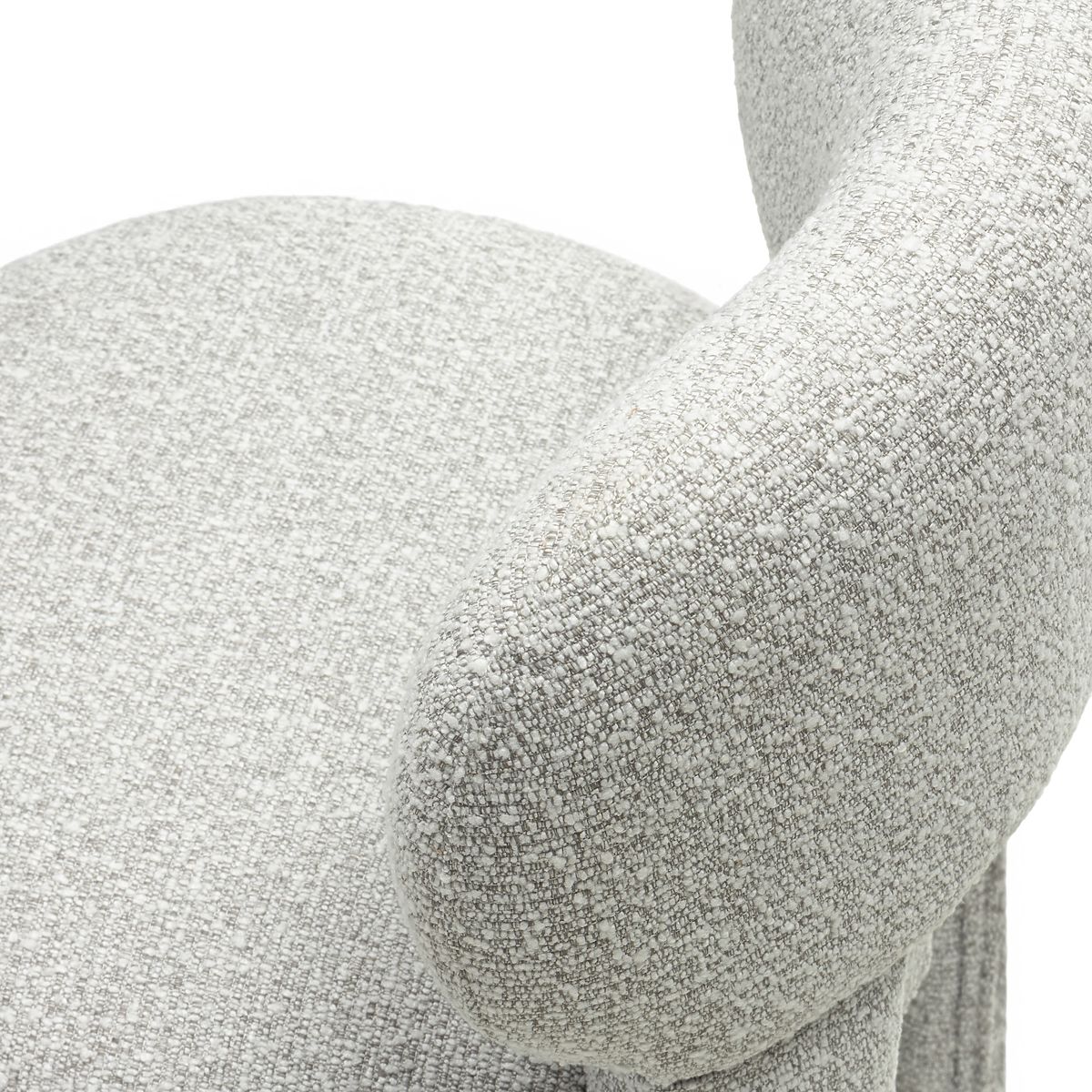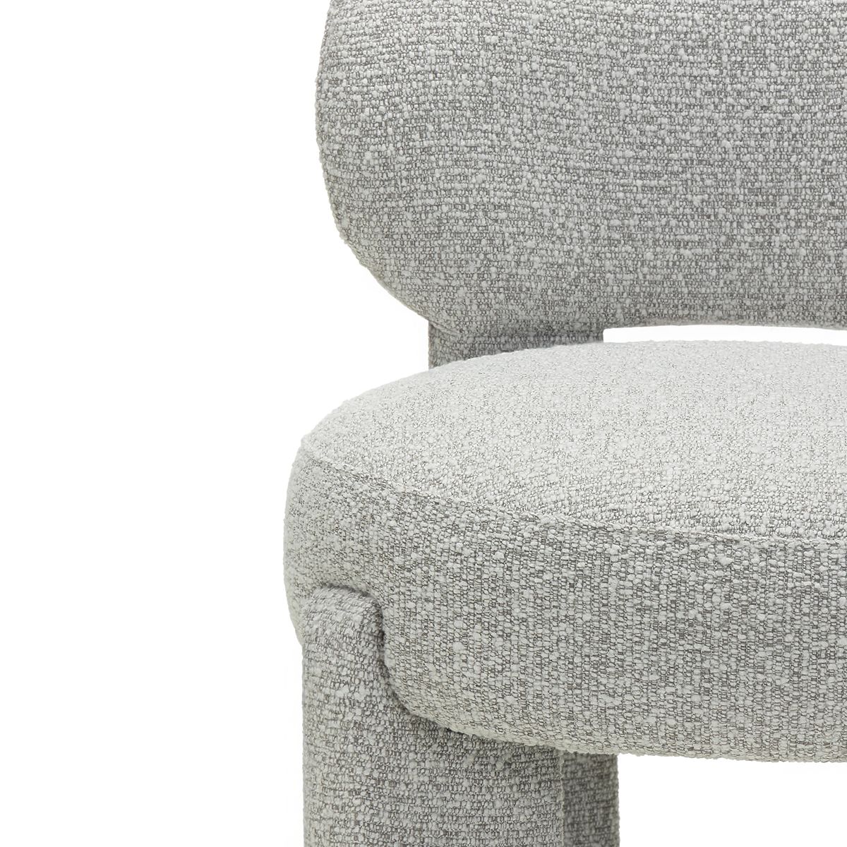 Gray boucle fabric chair with rounded shapes for modern interiors. .. more