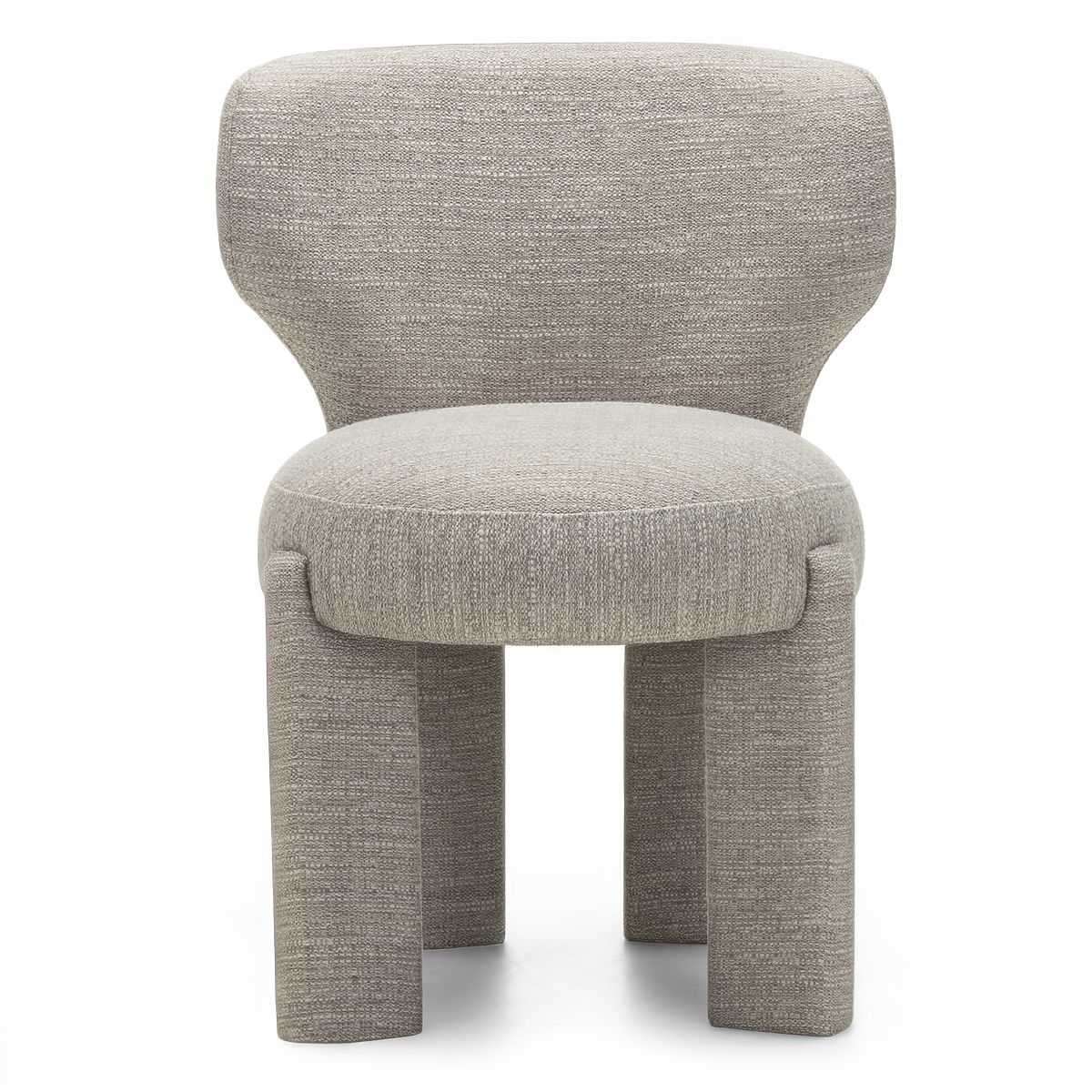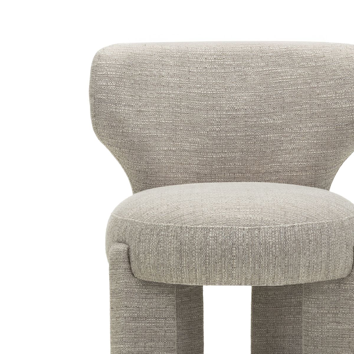 Modern design chair with beige fabric and rounded shape. .. more
