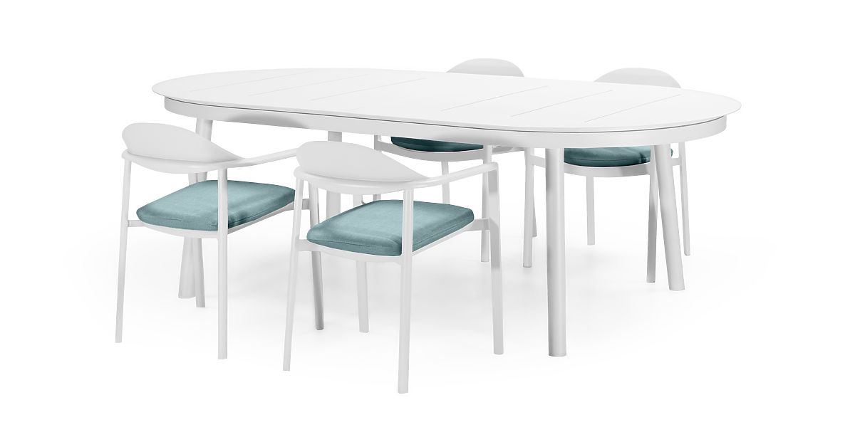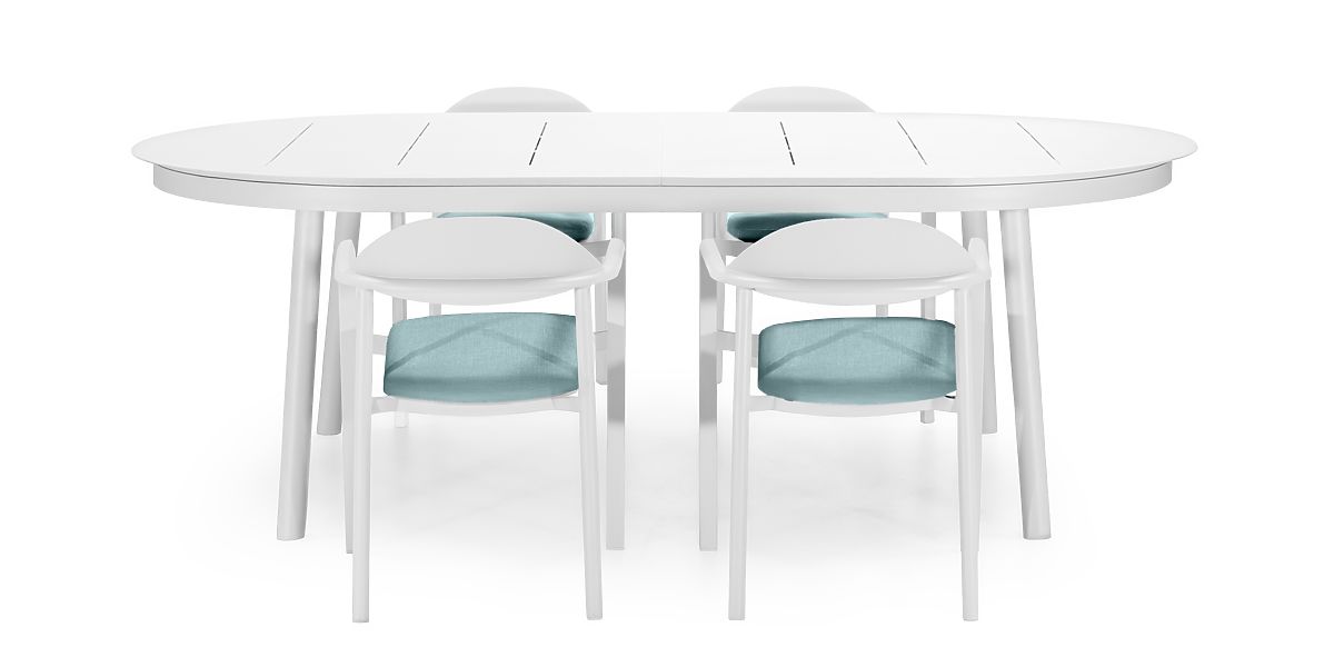 Lukahome.eu » Garden furniture / Garden sets / Marinelli Garden Set, Extendable Table 230-300 cm + 4 Chairs, Aluminum, White