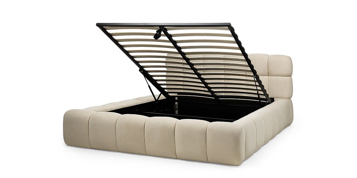Lukahome.eu » Beds / Double beds / Beds 160x200 / Upholstered Bed Nexo 160x200 cm, with Slatted Frame and Storage, Light Beige, Rounded Shapes