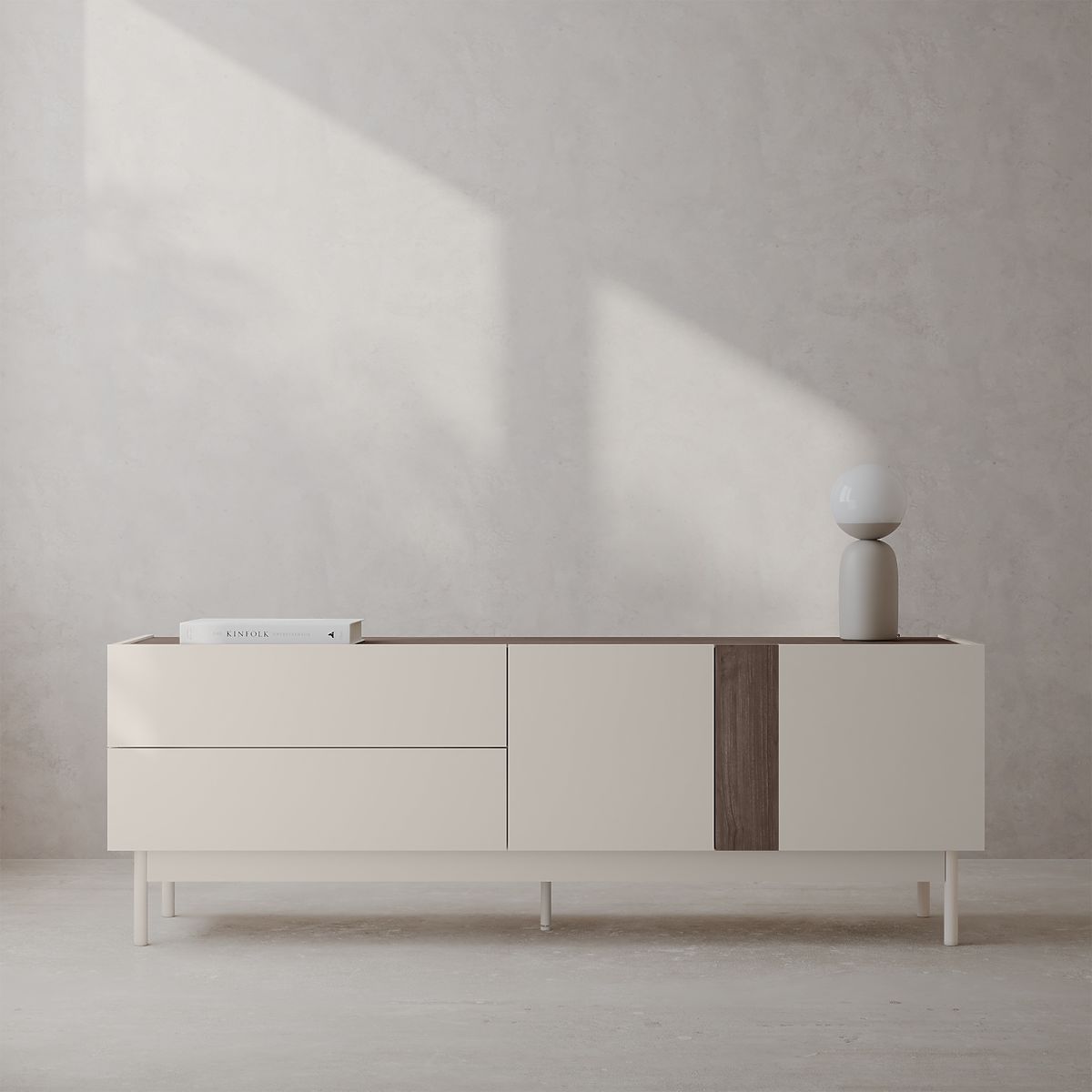 The Berula TV cabinet combines cashmere and walnut for warmth and harmony. .. more