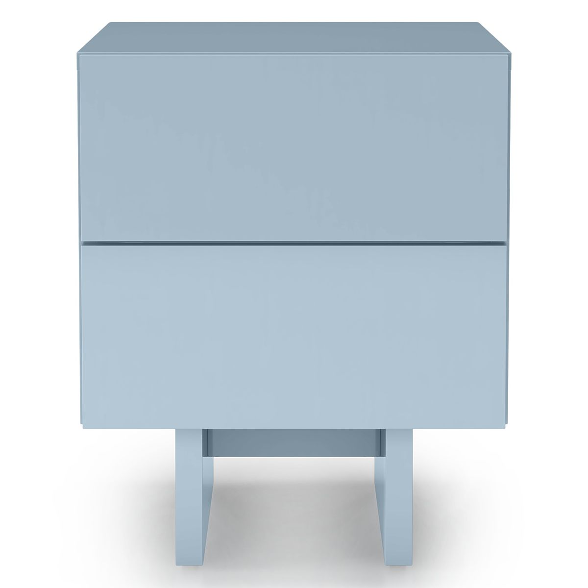 Smoky blue Glim nightstand with high gloss and push-to-open drawers. .. more
