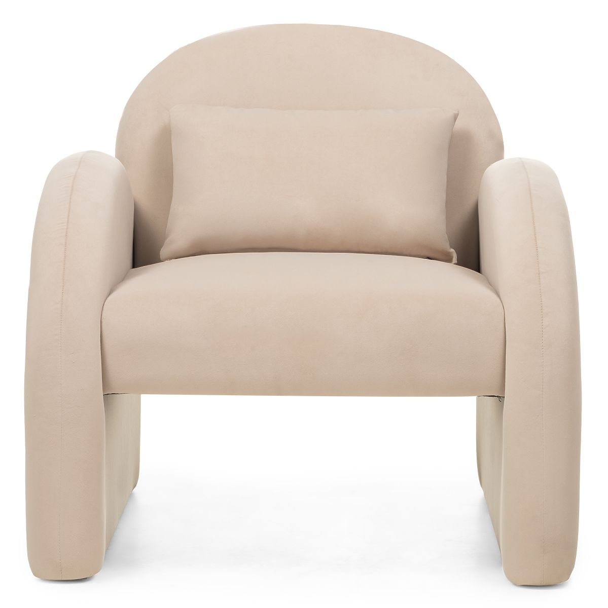 Rounded light beige velvet chair for ultimate relaxation. .. more