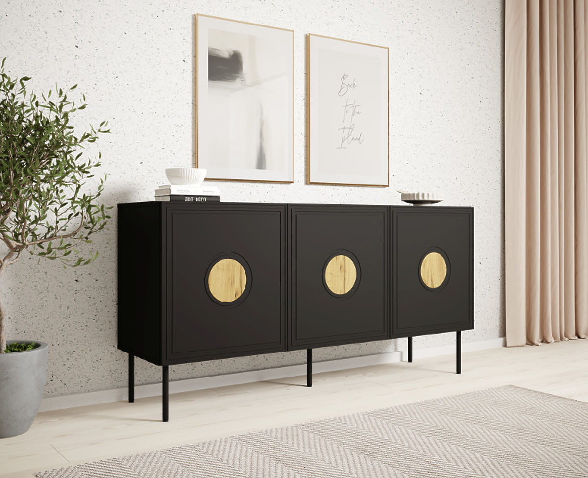 Sideboard with black matte finish and craft oak accents. .. more