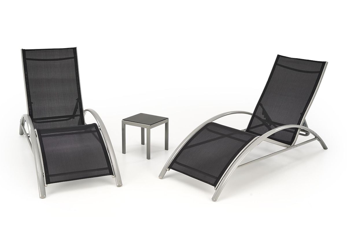 Set of 2 loungers with a table, black and light gray. .. more