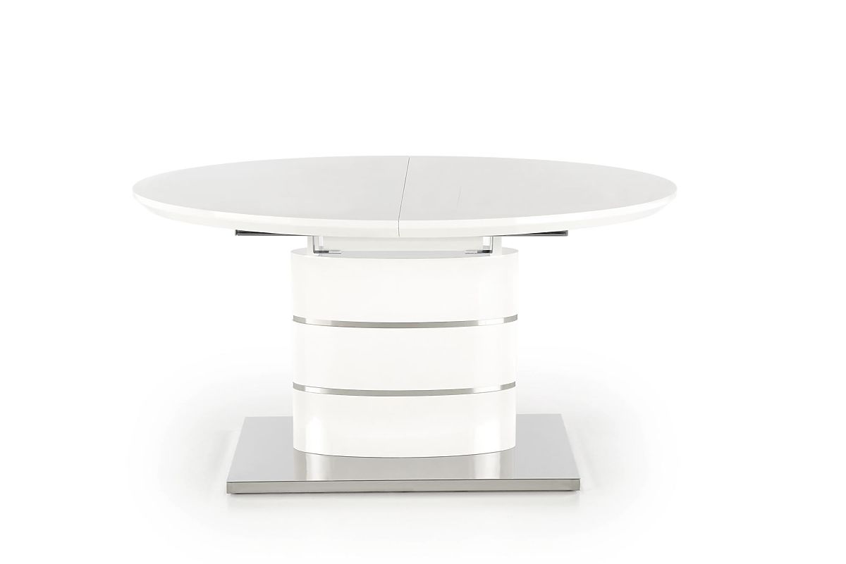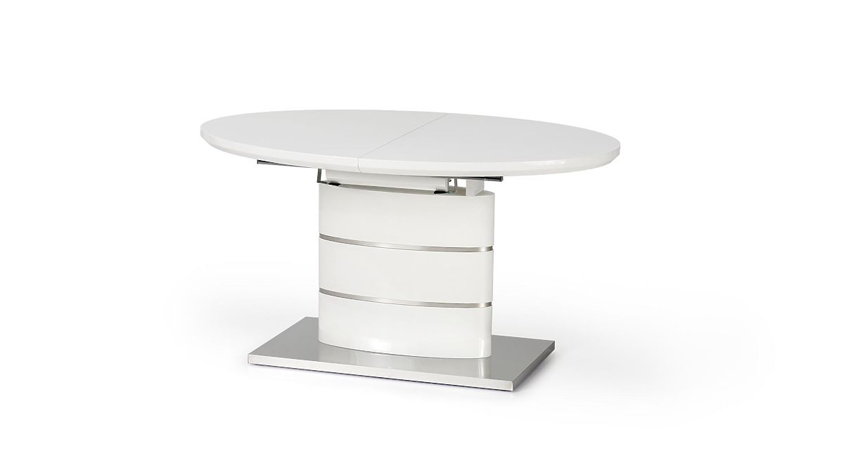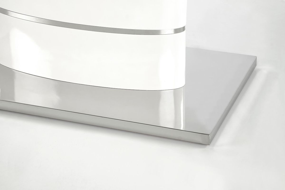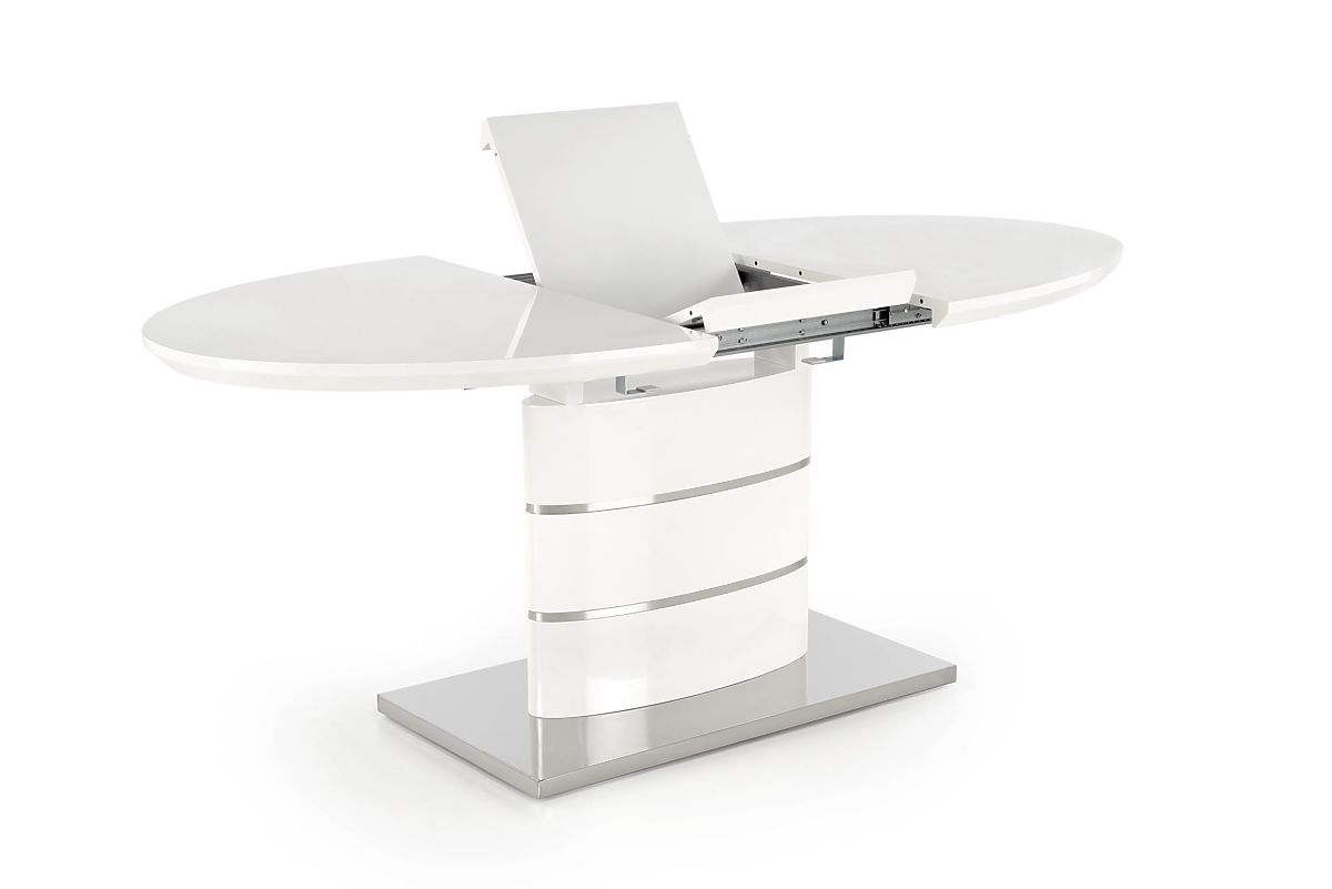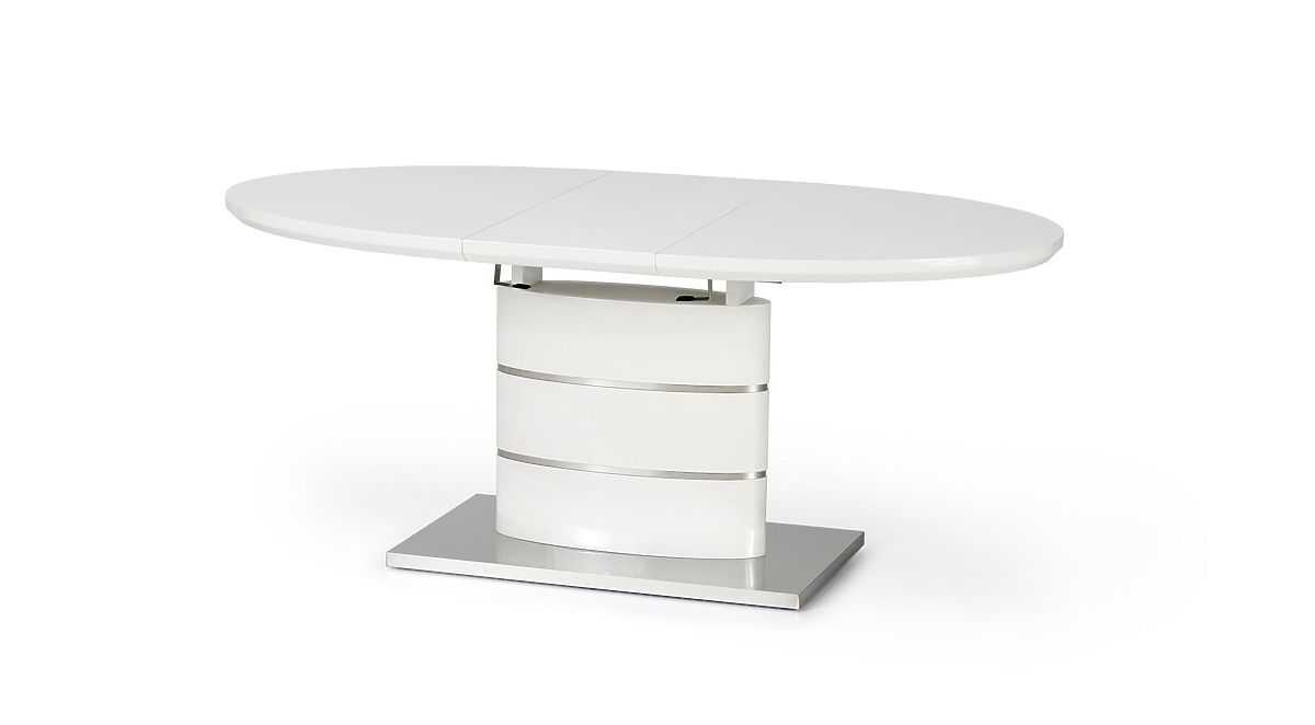 Extendable white table with lacquered MDF and stainless steel. .. more