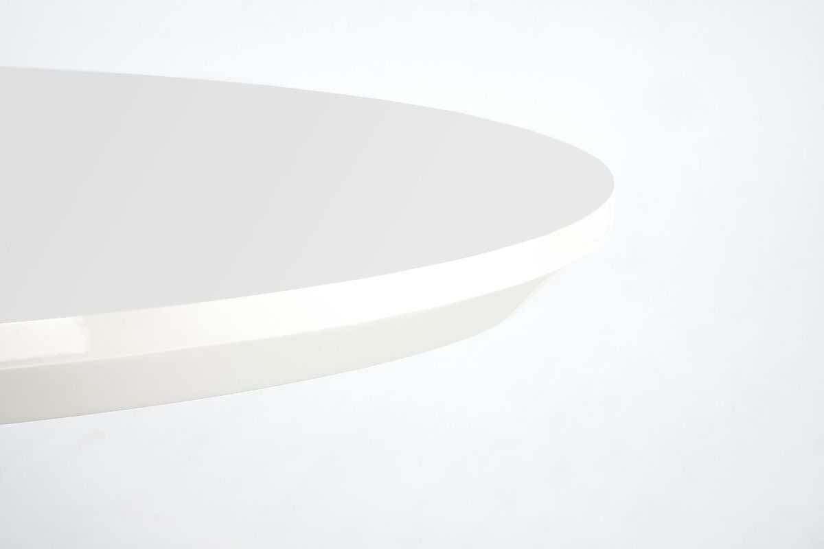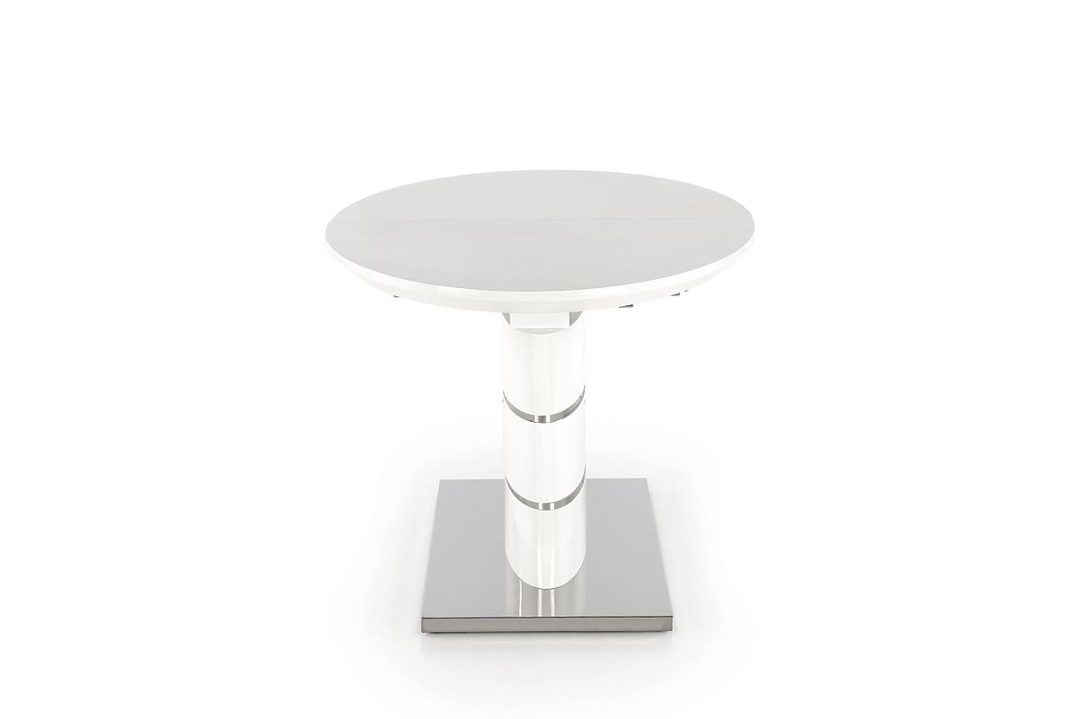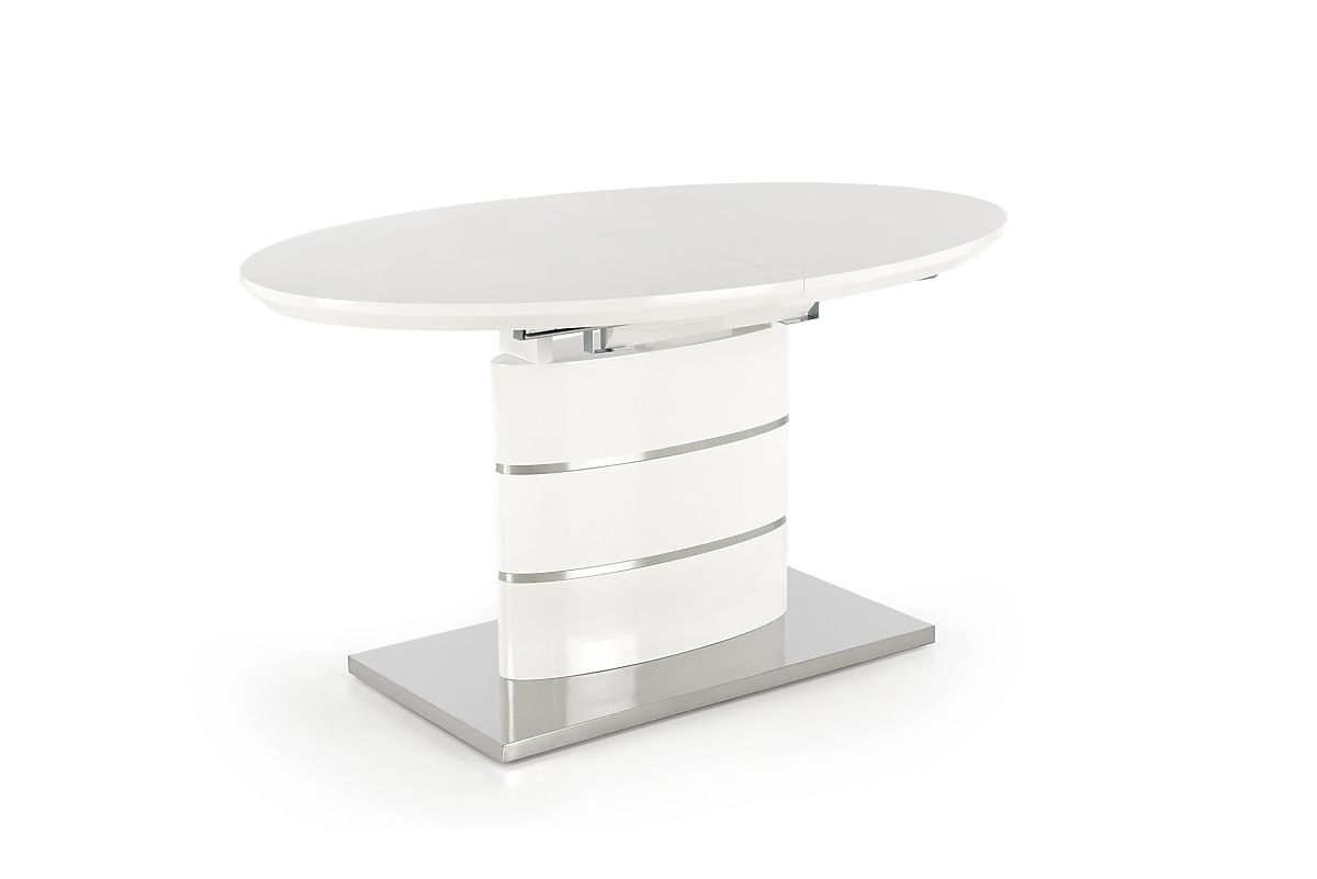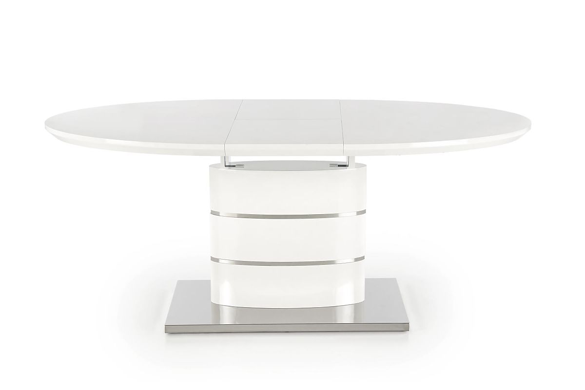 Extendable white table with lacquered MDF and stainless steel. .. more