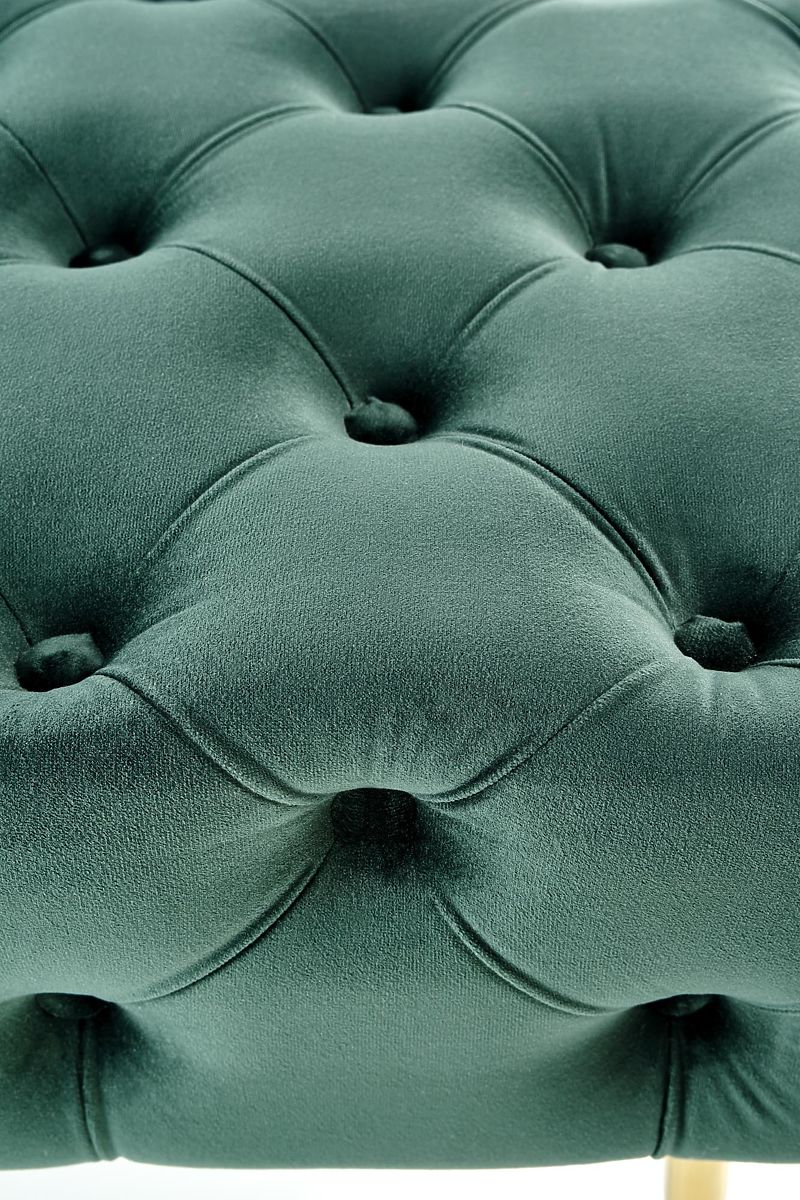 Bring a touch of elegance to your living room, bedroom, or relaxation zone with the ATHENA bench. At first glance, it captivates with its timeless design, perfectly combining soft velvet fabric with striking gold-plated steel legs. The result is a piece of furniture that adds flair and unique character to any interior. The soft, quilted velvet seat offers comfort that you'll instantly love—whether you use the ottoman as a footrest, additional seating, or a stylish decorative element. Thanks to its quality construction and sturdy steel base, you can rely on its stability and long lifespan. Assembly is very easy and can be done by anyone in just a few moments. The ATHENA ottoman supports up to 100 kg, making it not only beautiful but also practical.