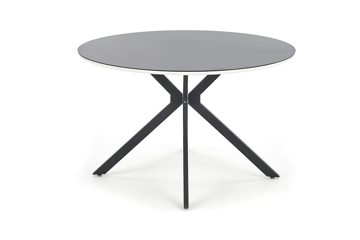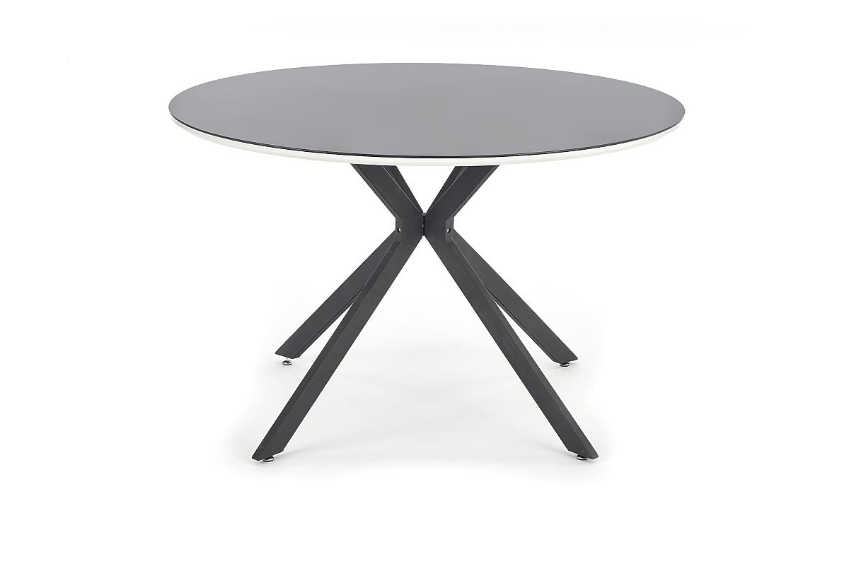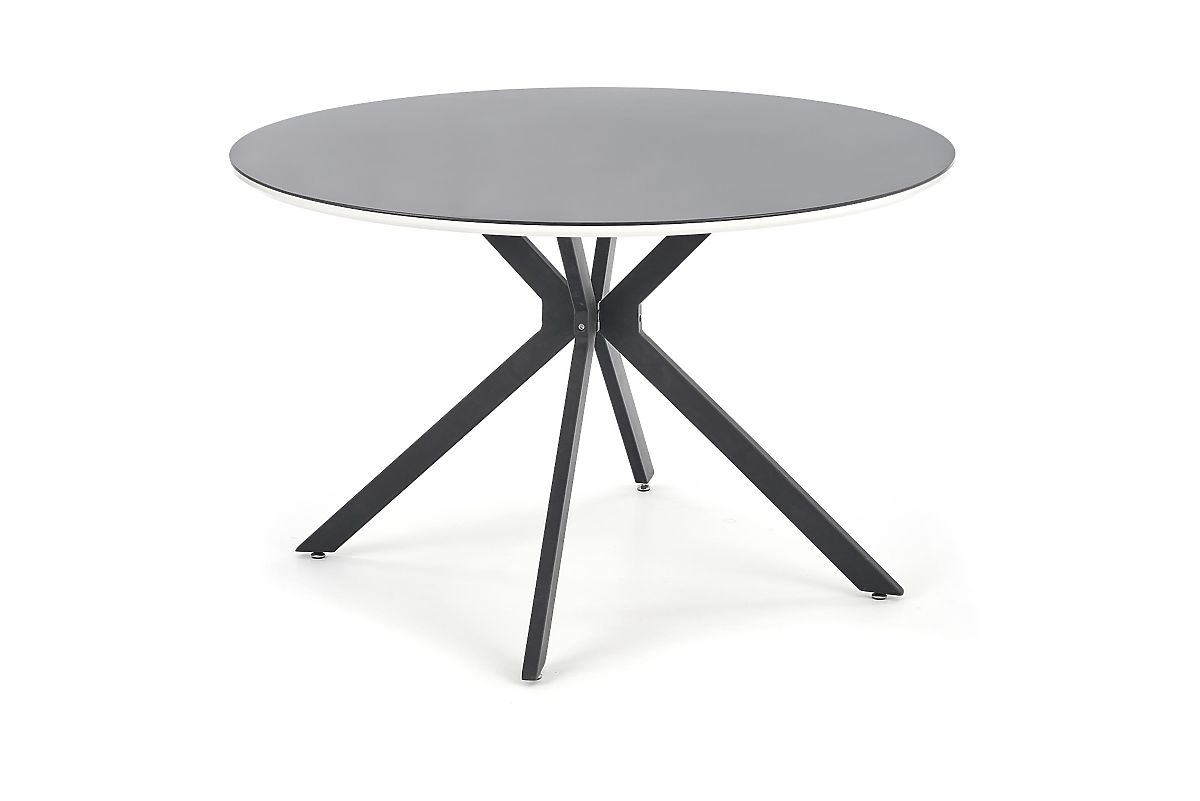 The AVELAR dining table is the perfect choice for anyone looking for a striking, modern, and elegant element for their home or commercial space. With its extravagant design, it immediately becomes the focal point of the interior, giving it a unique character - it fits perfectly into modern dining rooms, cafes, bars, or stylish establishments. The round tabletop with a diameter of 120 cm provides comfortable space for up to 4 people, allowing you to enjoy family lunches, gatherings with friends, and everyday comfortable dining. The top is made of quality glass combined with lacquered MDF boards, creating an elegant and easy-to-maintain surface. A more robust base made of MDF boards complemented by powder-coated steel ensures high stability and long durability. With a load capacity of 40 kg, it is a sturdy piece of furniture that will withstand both home and commercial conditions.
