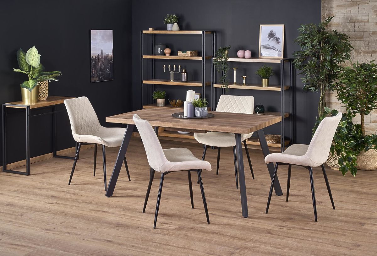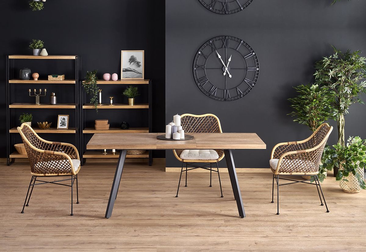 Lukahome.eu » Dining room and kitchen / Dining tables / BERLIN Extendable Table 140-180 cm, Top - Walnut, Frame - Black (2p=1pc)