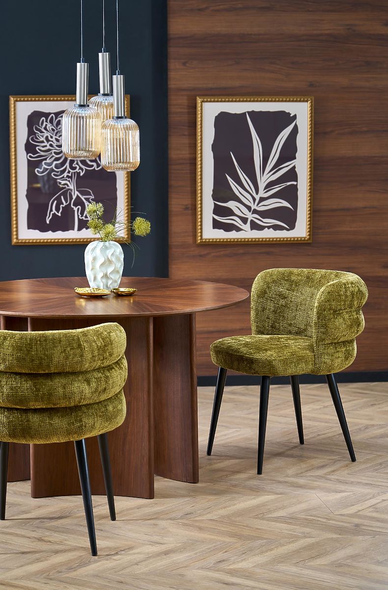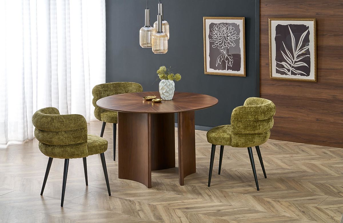 Round walnut table with MDF and natural veneer. .. more