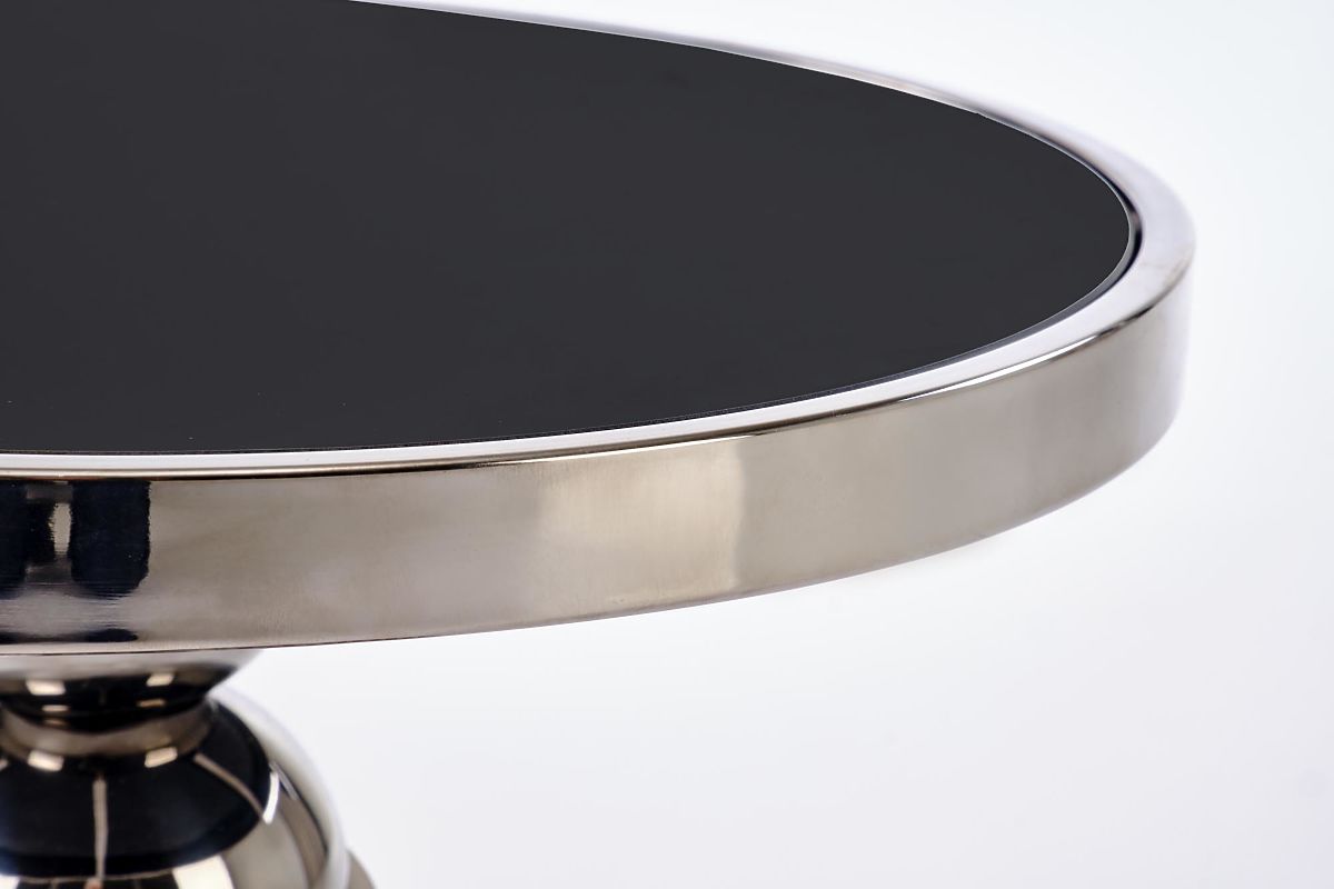 Black and silver coffee table made of glass and stainless steel. .. more