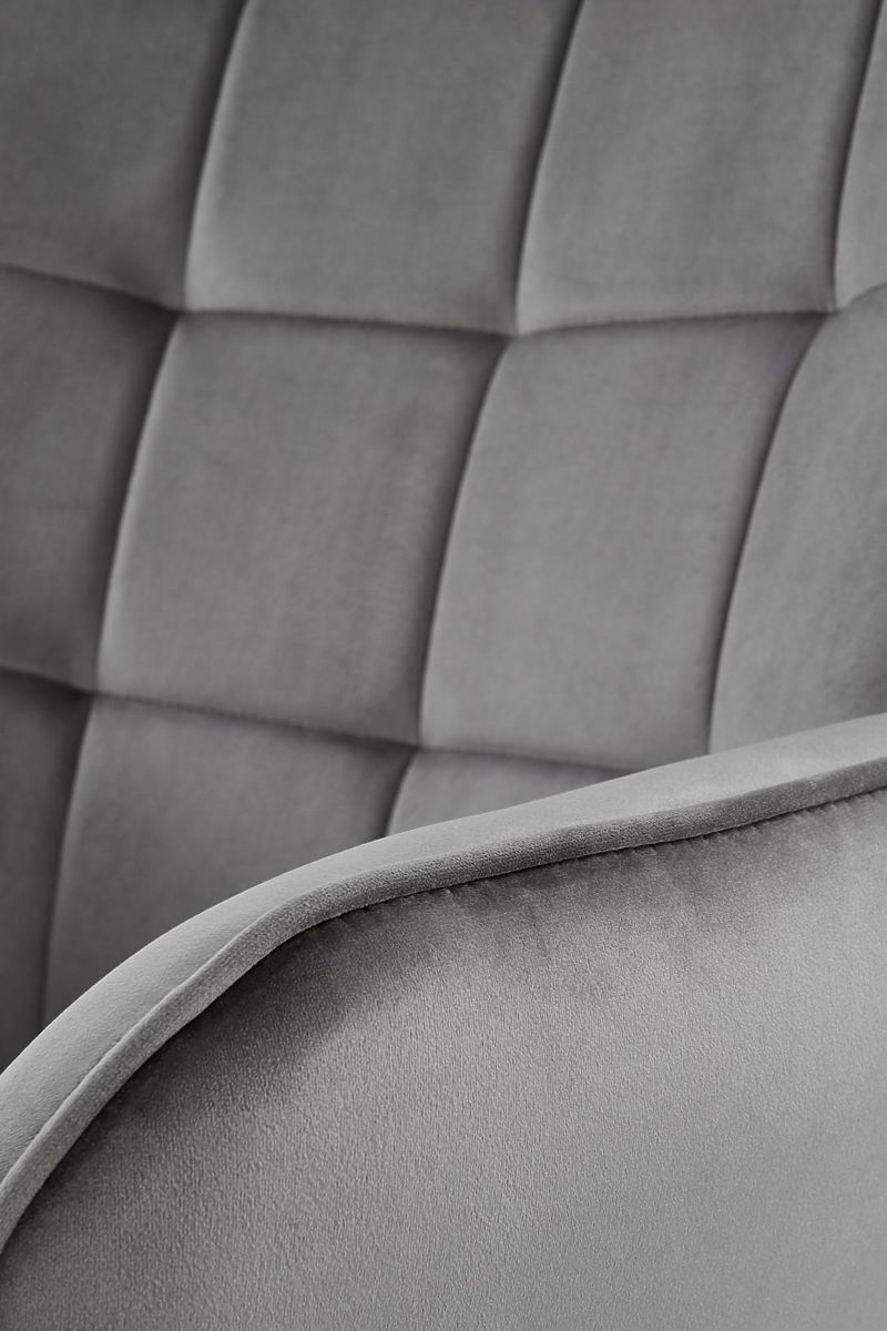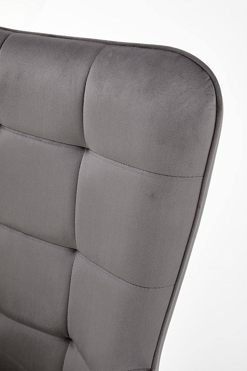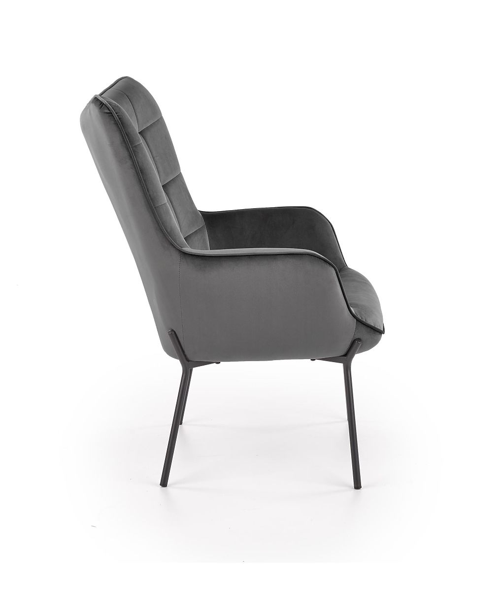 Relaxation chair with gray upholstery and black legs. .. more