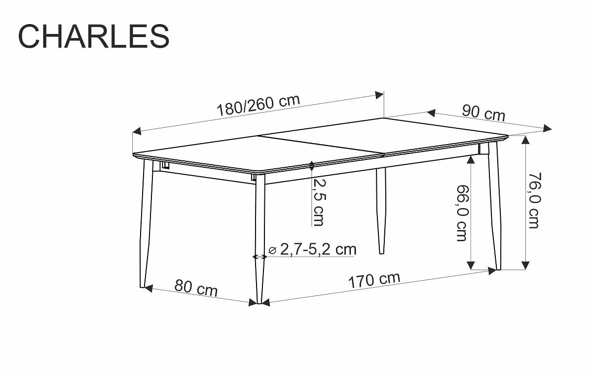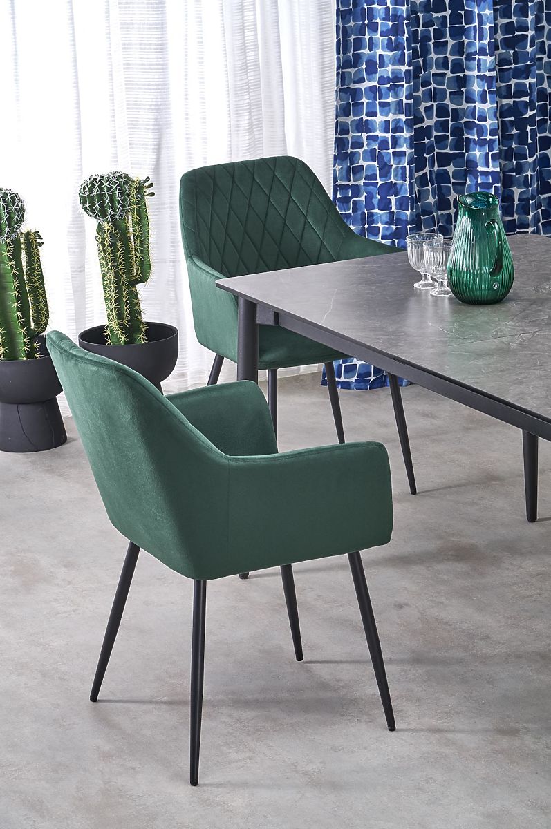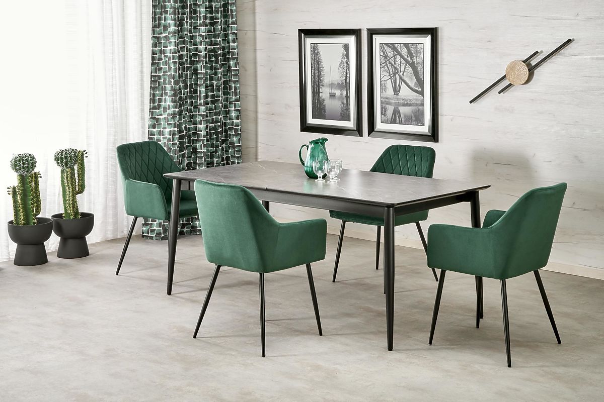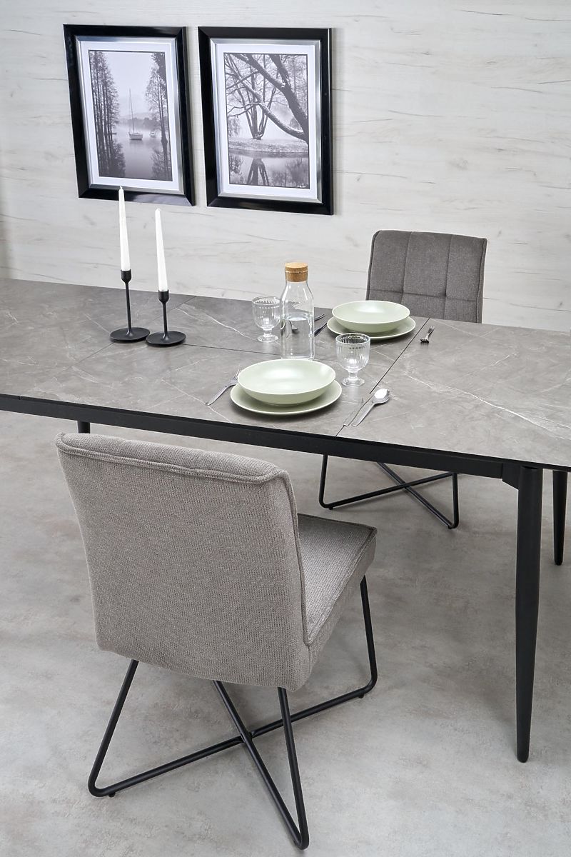 Lukahome.eu » Dining room and kitchen / Dining tables / CHARLES Extendable Table, Top - Gray Marble, Legs - Black