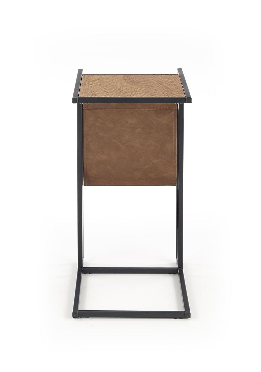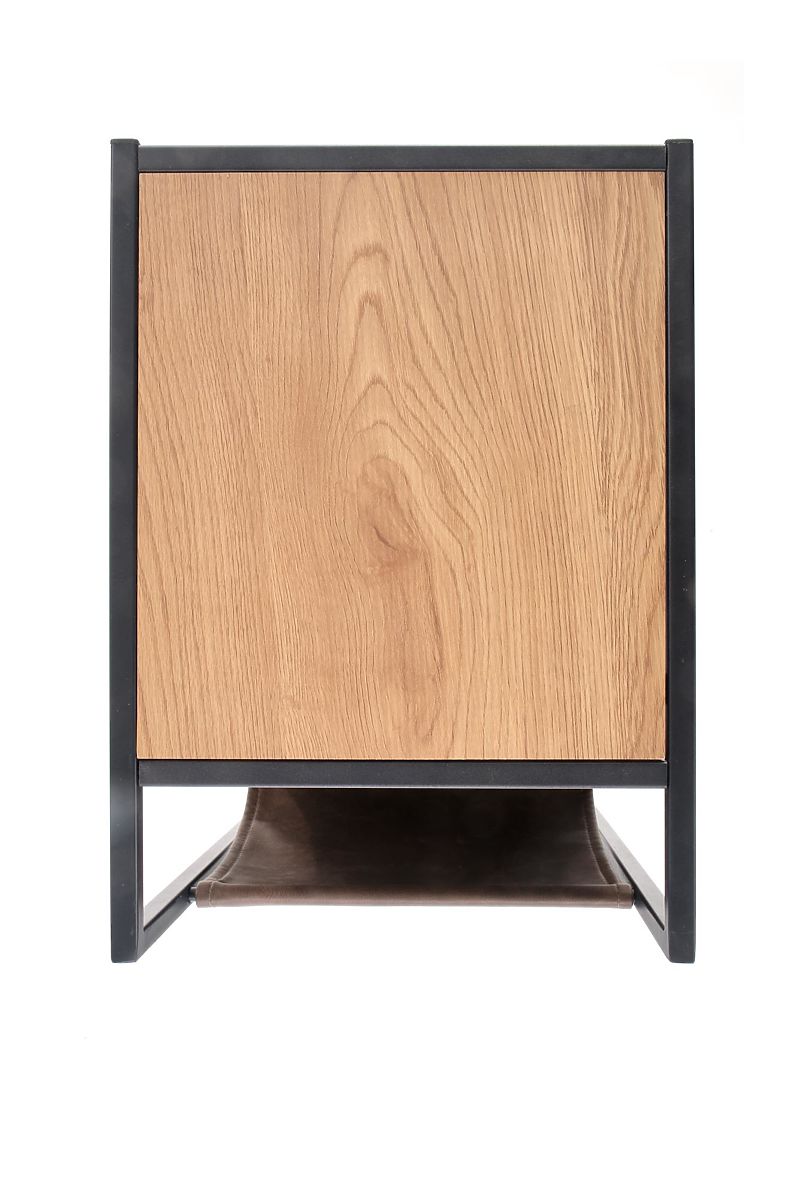 Golden oak and black coffee table with eco-leather and steel. .. more