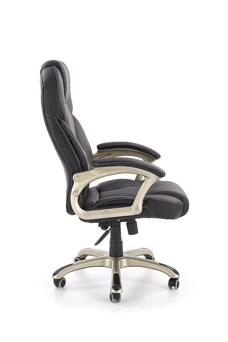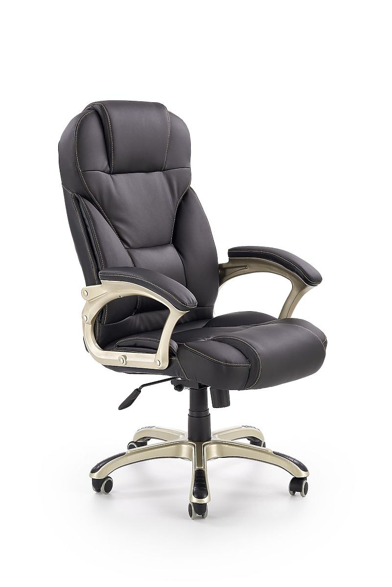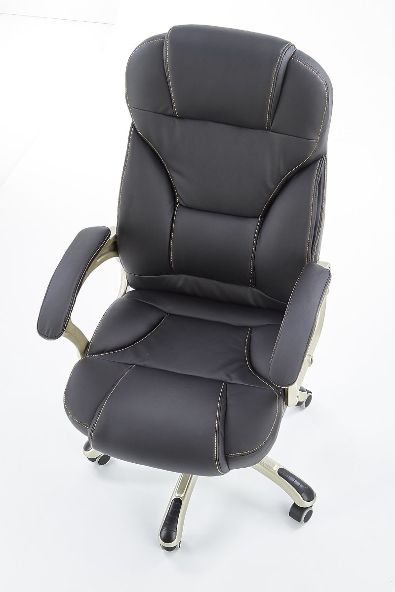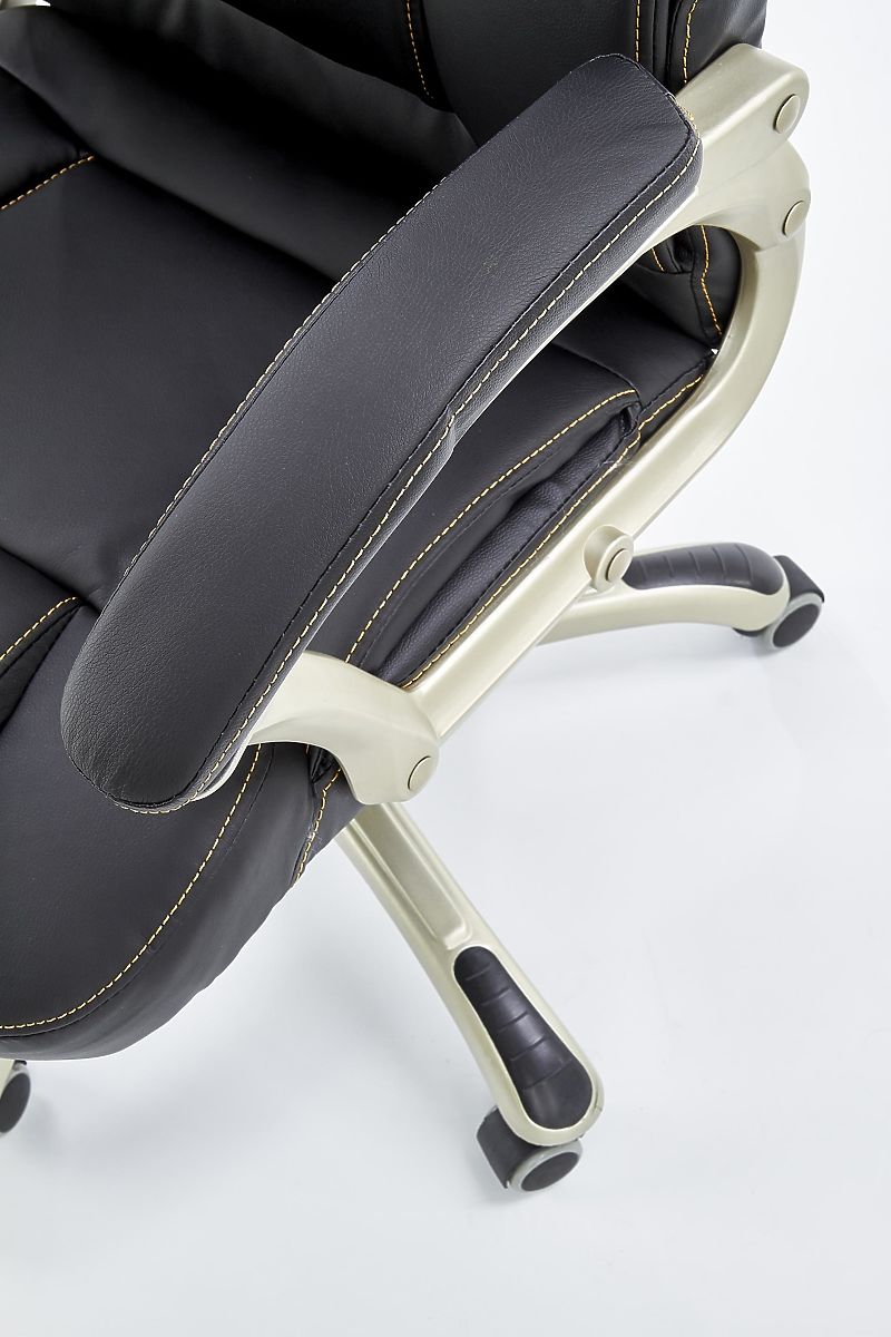 Black office chair with eco leather and rubber-covered wheels. .. more