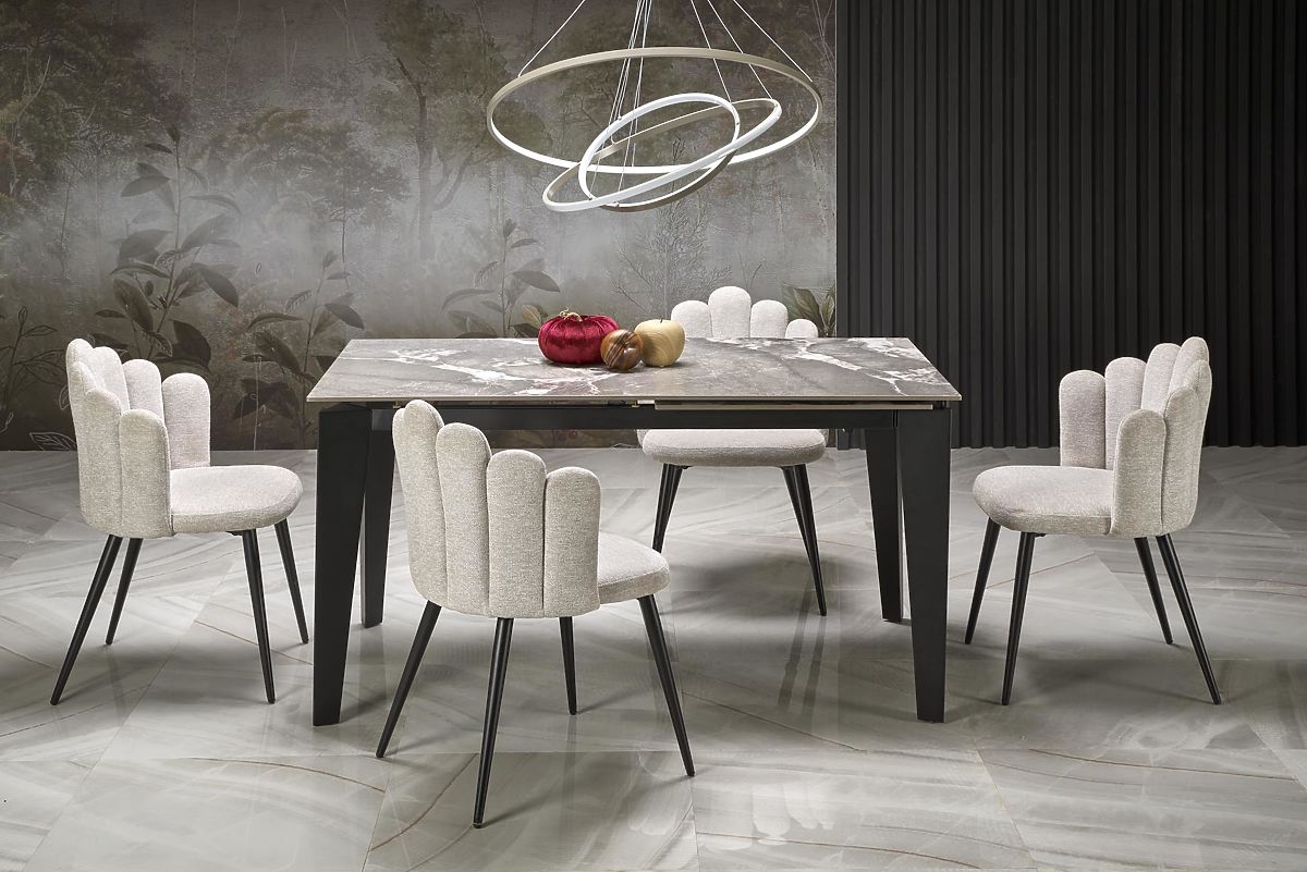 Lukahome.eu » Dining room a kitchen / Dining tables / FELIX extendable table, top - gray marble, legs - black (2p=1pc)