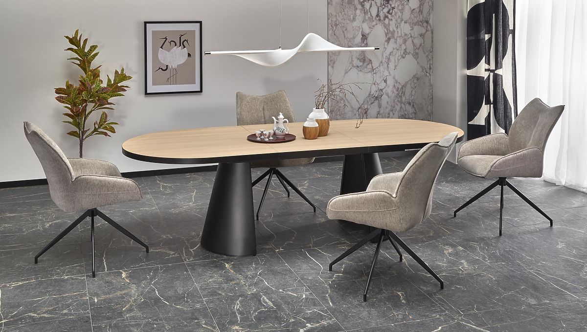 Lukahome.eu » Dining room and kitchen / Dining tables / Extendable Table GIACOMO, Top - Natural, Leg - Black (2p=1pc)