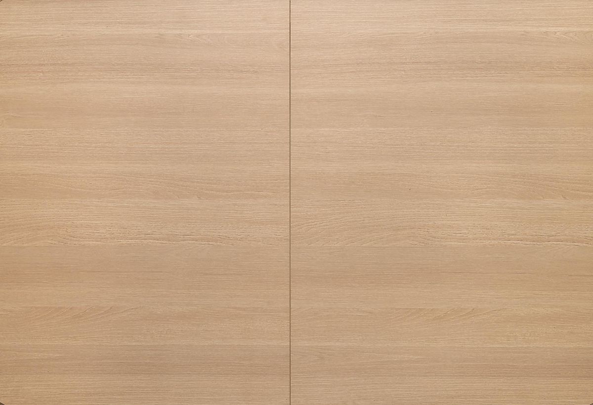 Extendable table with a natural top and black legs. .. more
