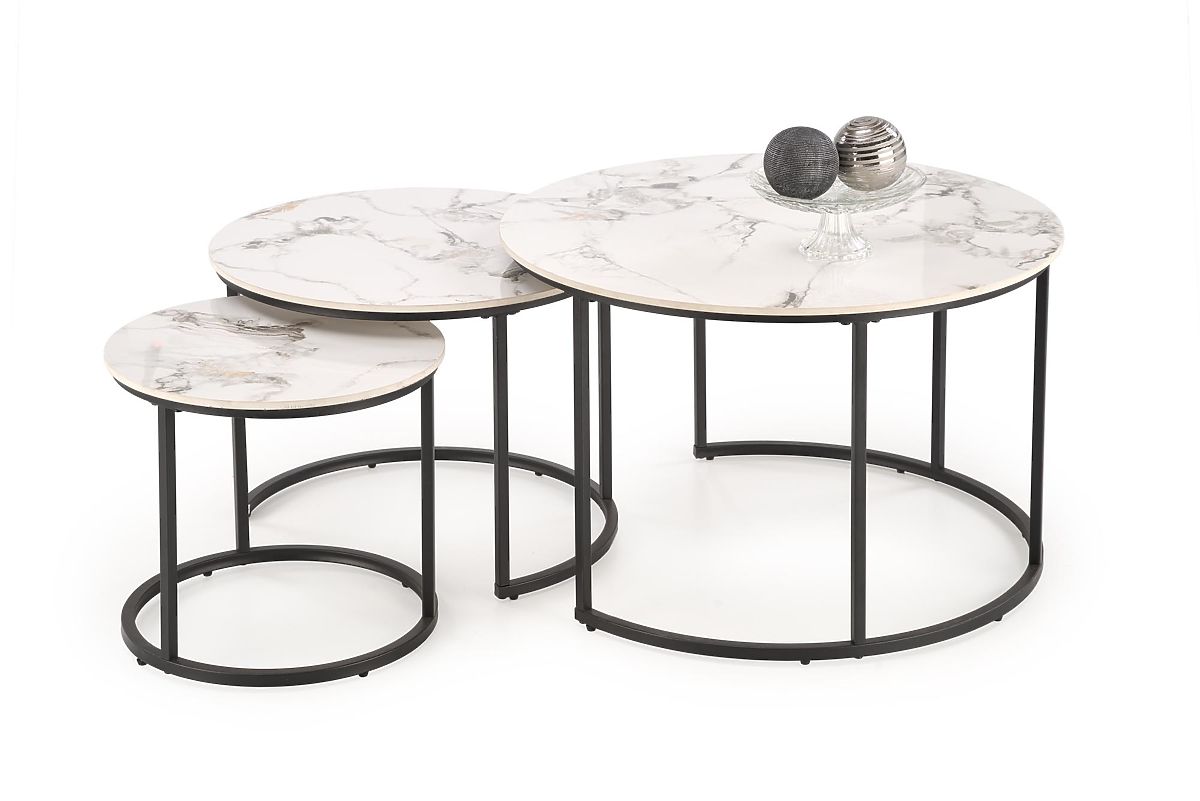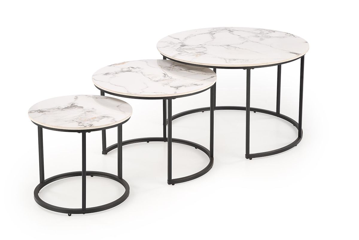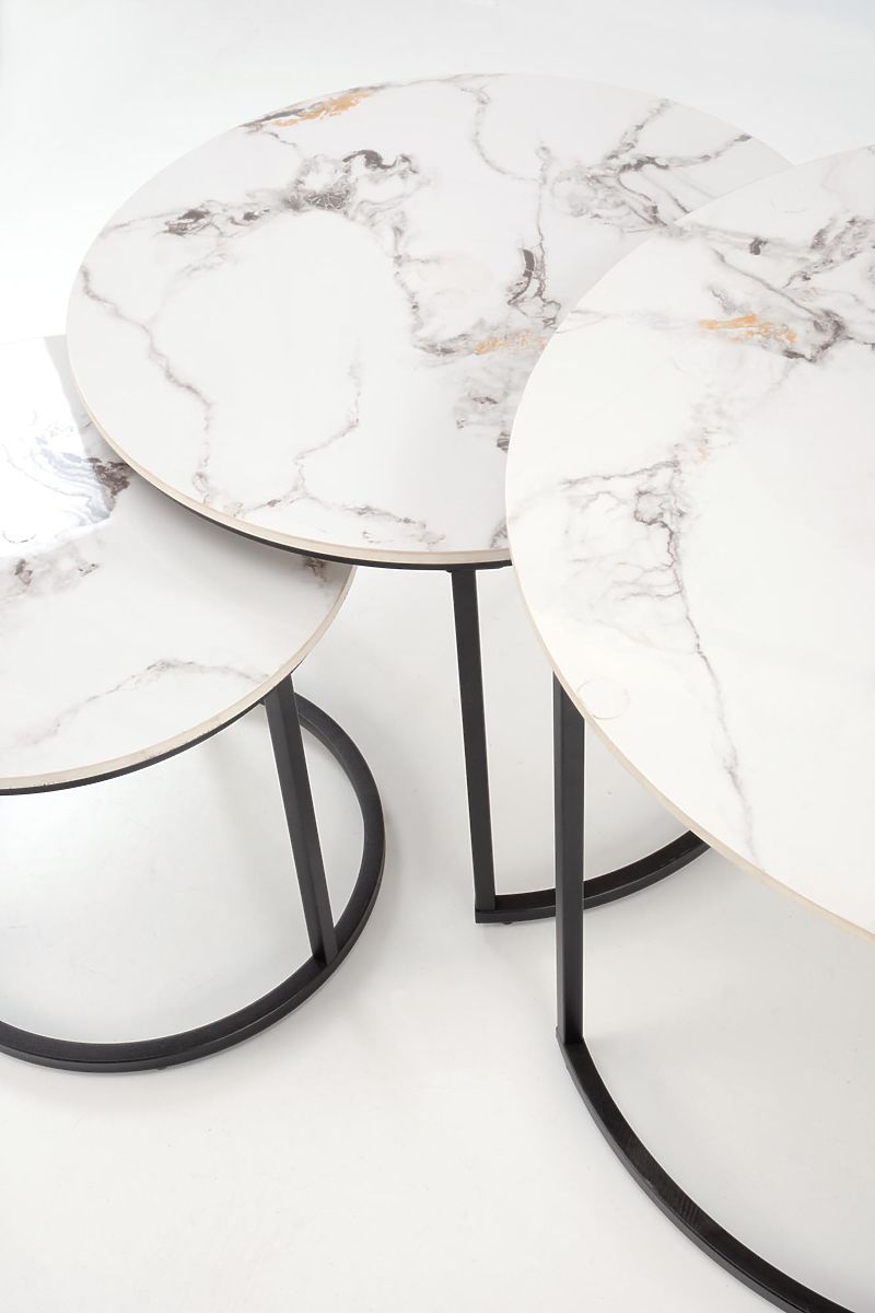 Lukahome.eu » Tables and coffee tables / Coffee tables / GILDA set of 3 tables, white marble / black (1p=1set)