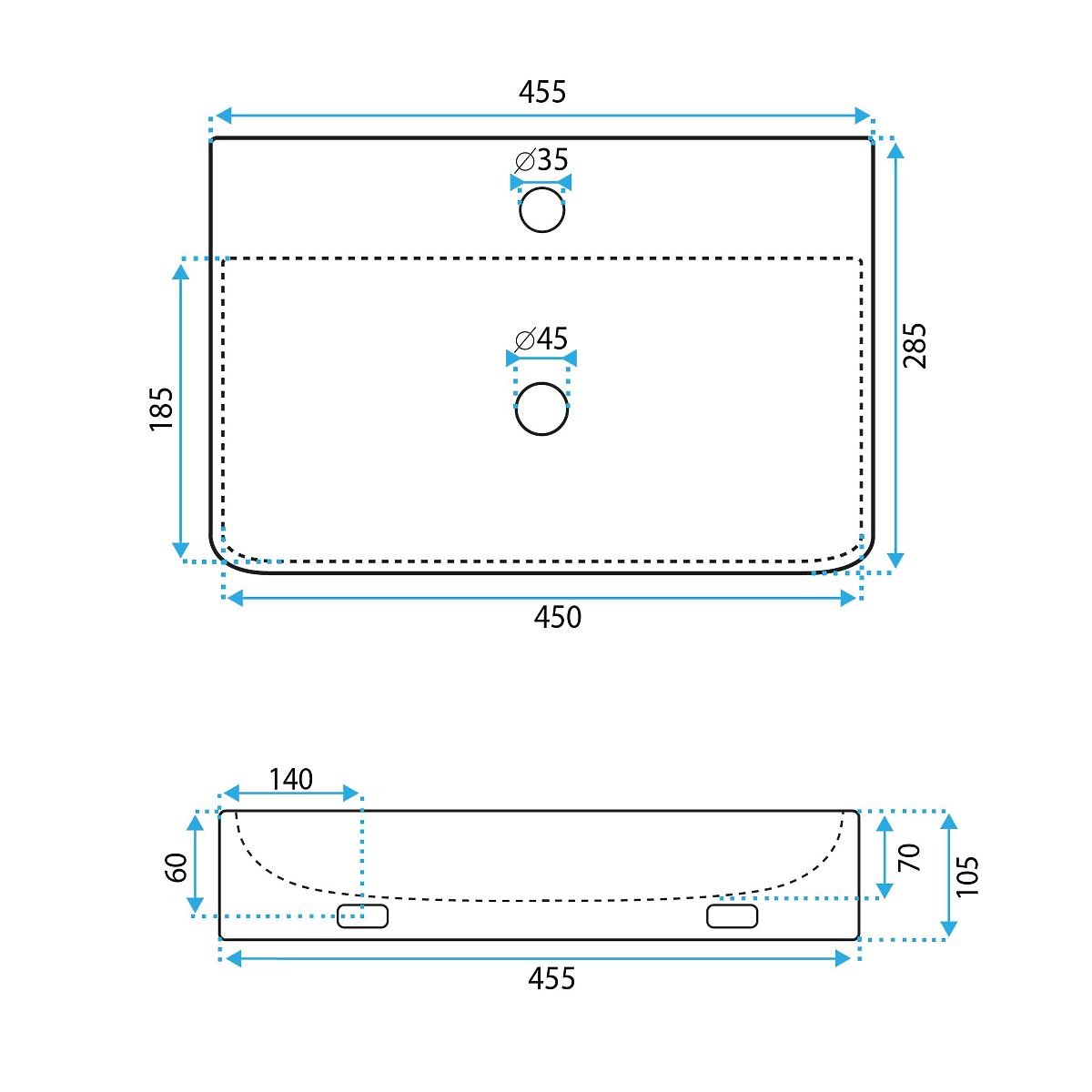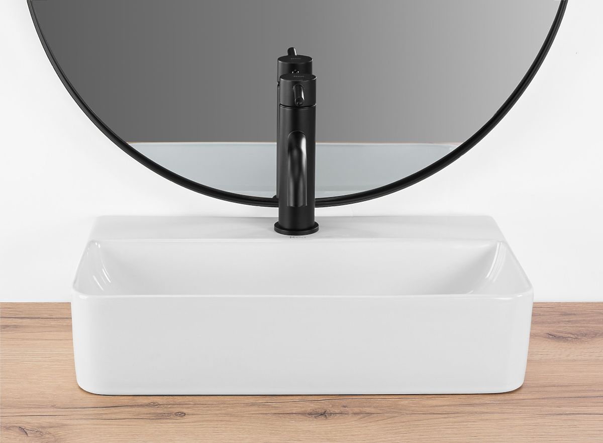 Slim-line wall-mounted basin for countertop or wall installation. .. more
