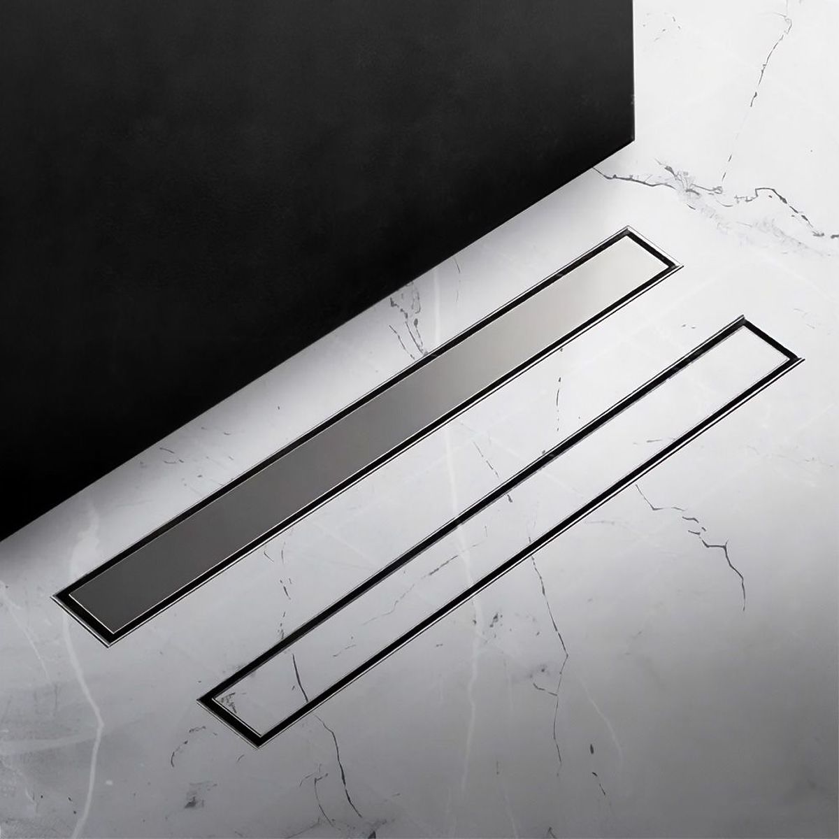 Modern linear drain with dual surface finish options for bathroom customization. .. more