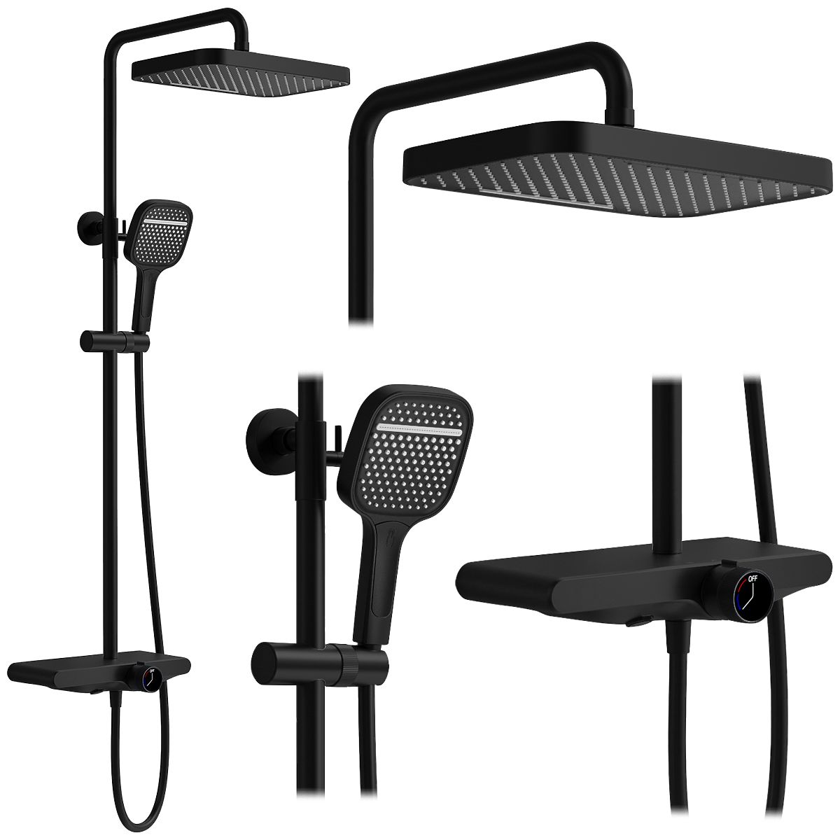 Shower Set Bari Black We present to you the wall-mounted shower set Bari. This set is designed with comfort and functionality in mind. The modern shape of the shower components is covered with a 4-layer coating of the highest quality. This technique protects the faucet against corrosion and discoloration. The package includes an ultra rain shower, faucet with components, hose with handset and spout. The set is perfect for those looking for unconventional solutions and wanting to create an original and unique dream bathroom. The presented shower set does not have water pressure regulation.