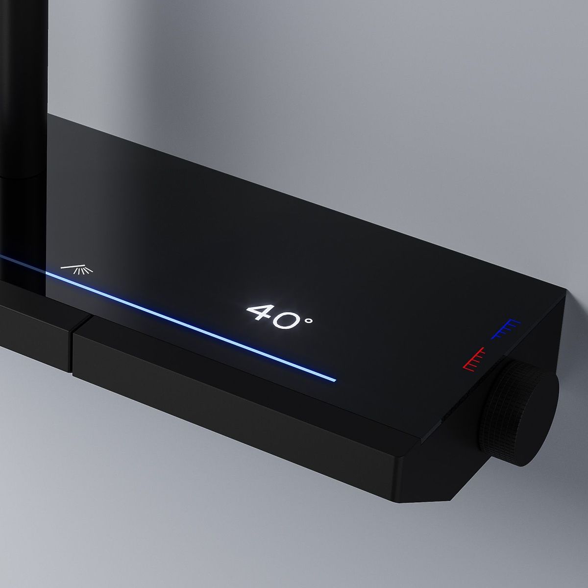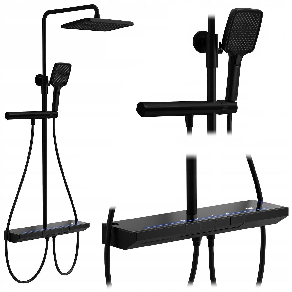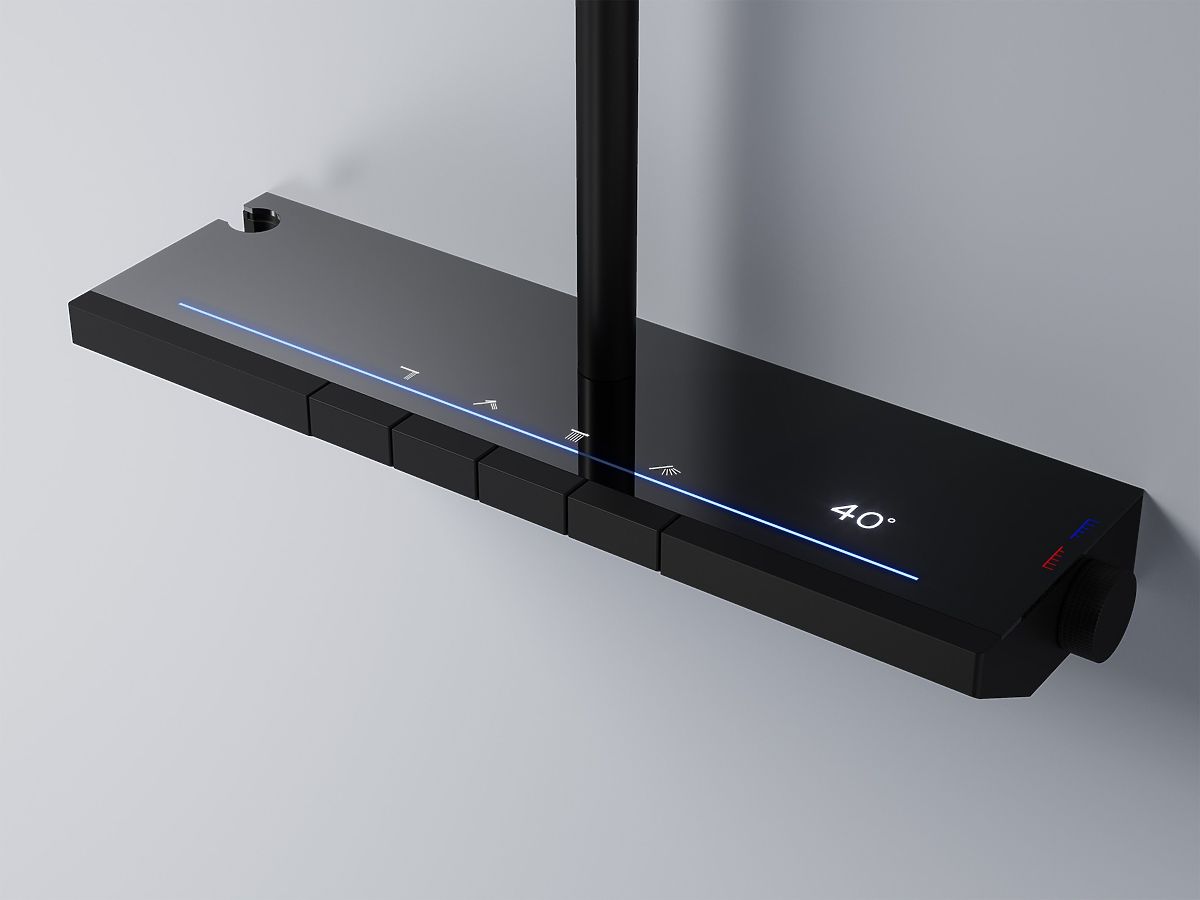 Modern matte black shower set with thermostat and LED display. .. more