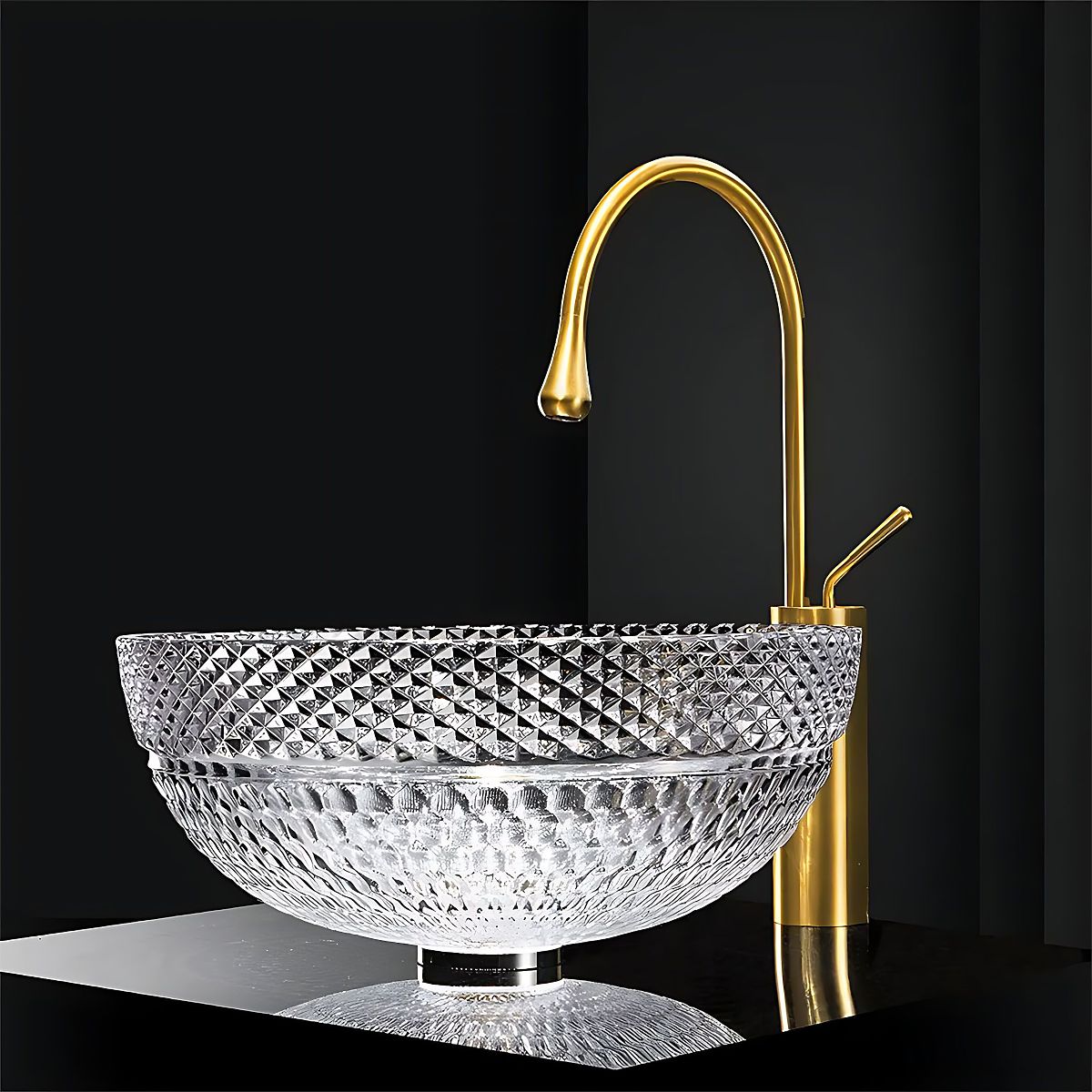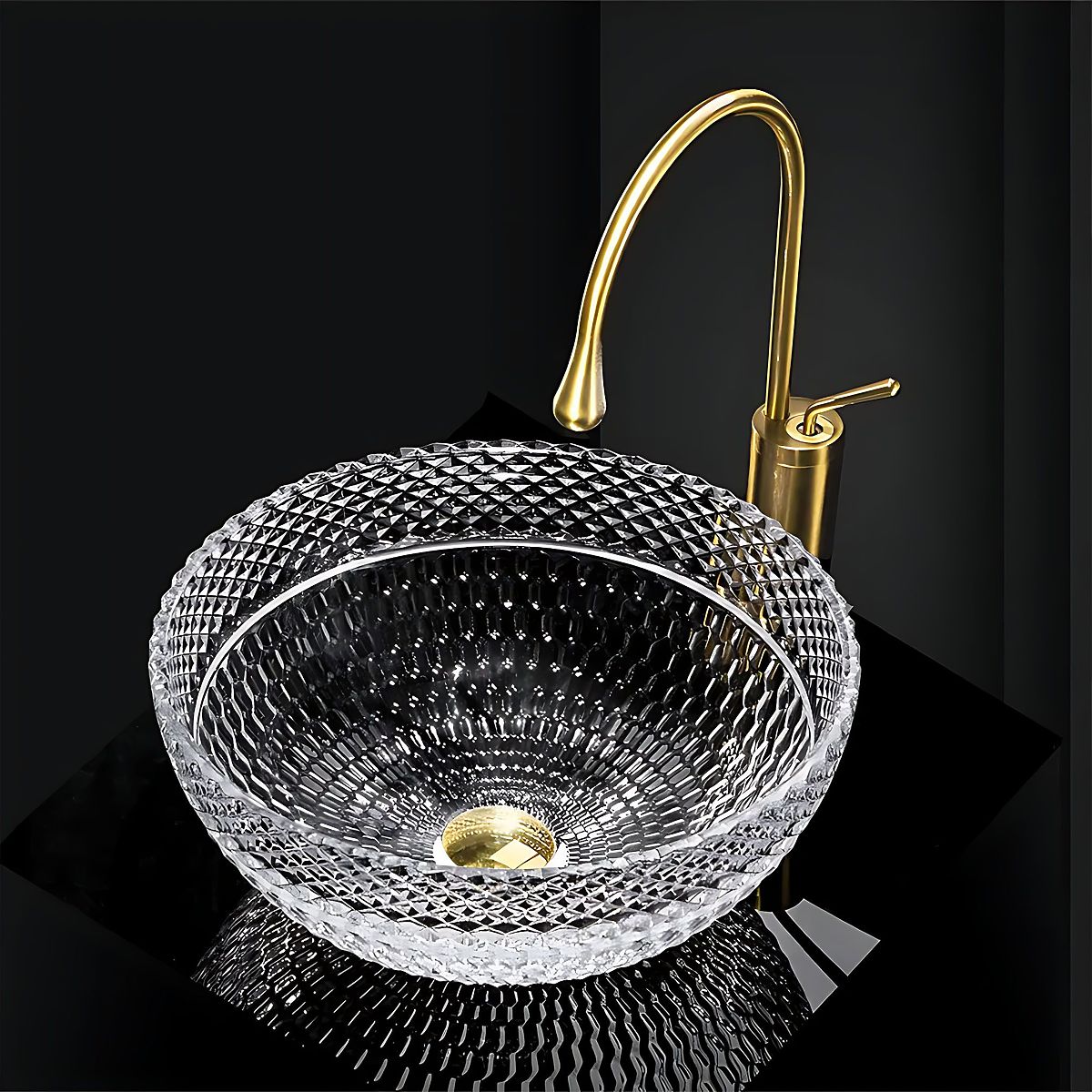 The crystal timeless Sue washbasin is an exceptional bathroom fixture that combines elegance and functionality. Made from high-quality tempered glass, it features a precisely decorated surface with an impressive diamond pattern that beautifully reflects light, giving the interior a luxurious character. Its design is adapted for mounting on a countertop or cabinet, allowing for flexible adaptation to various arrangements. It is an excellent choice for those who want to add exceptional style and elegance to their bathroom.