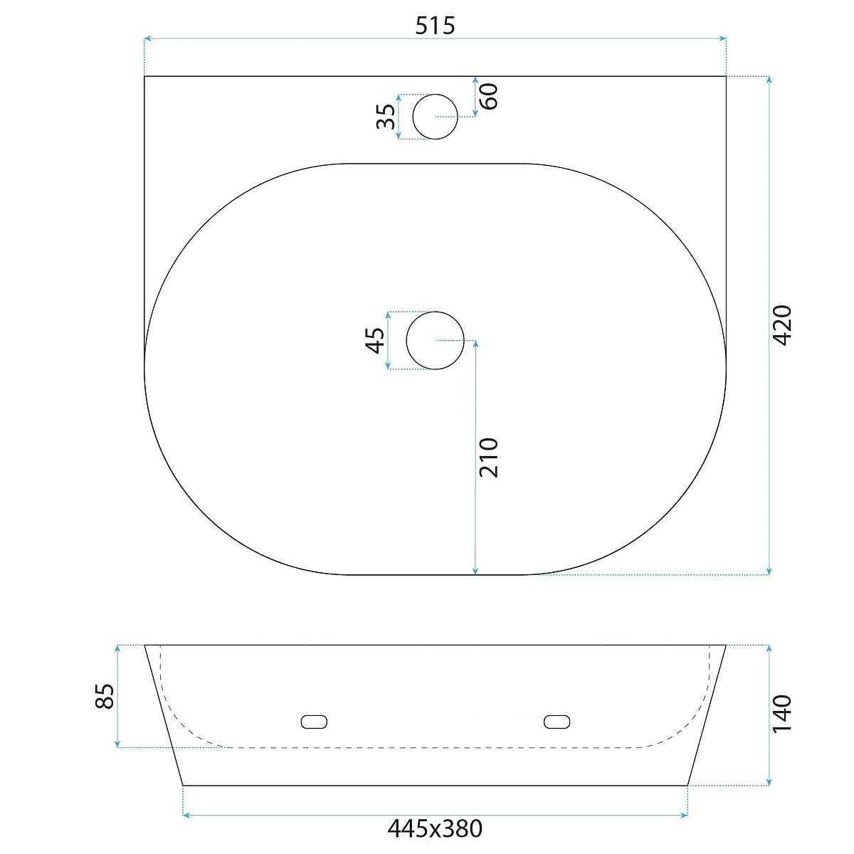 The modern white ceramic basin is a functional and aesthetic solution for any bathroom. Its ergonomic, rounded shape ensures comfort during use, and the smooth surface makes cleaning easy. Thanks to its universal design, this model can be mounted on a countertop or directly on the wall. The basin has a tap hole, allowing for quick installation of the chosen fittings. High-quality sanitary ceramics guarantee durability and resistance to staining and mechanical damage.