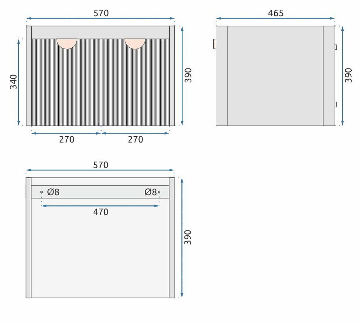 The set includes a ceramic sink with a tap hole, sized to fit the lower cabinet. Its universal form blends well with the rest of the set, creating a unified and aesthetic whole. Mario is a set that offers a cohesive look and practical solutions – ready for assembly and immediate use in any modern bathroom.