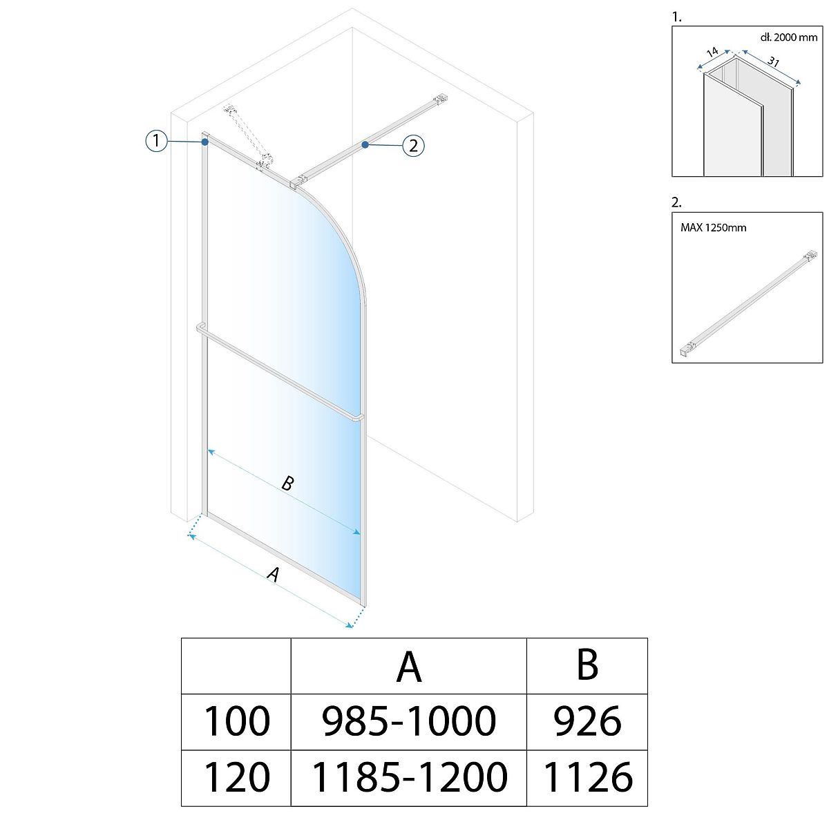 Tempered glass shower screen in various sizes for modern bathrooms. .. more