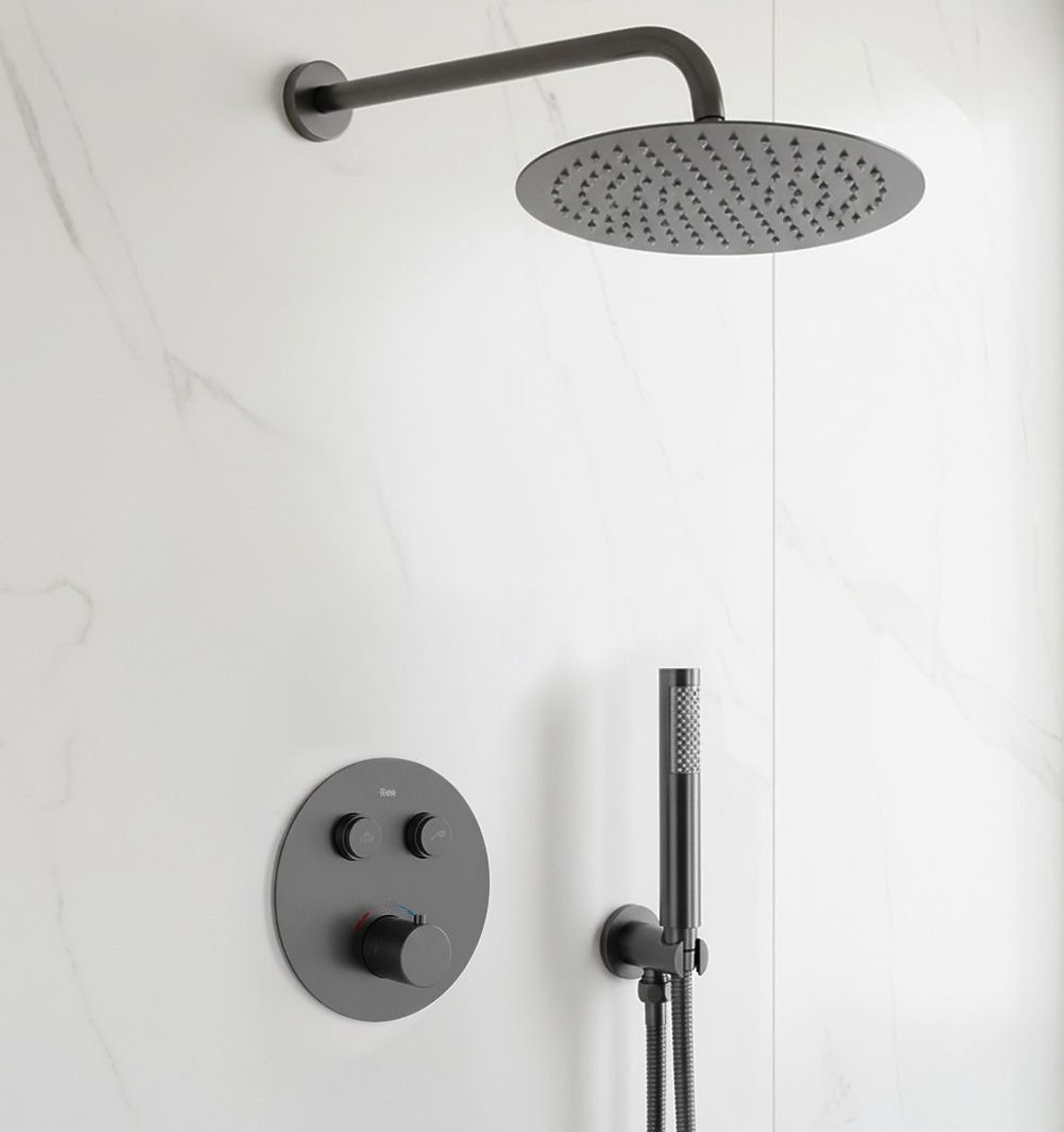 Recessed shower set with rain and hand shower, thermostat and Box system. .. more