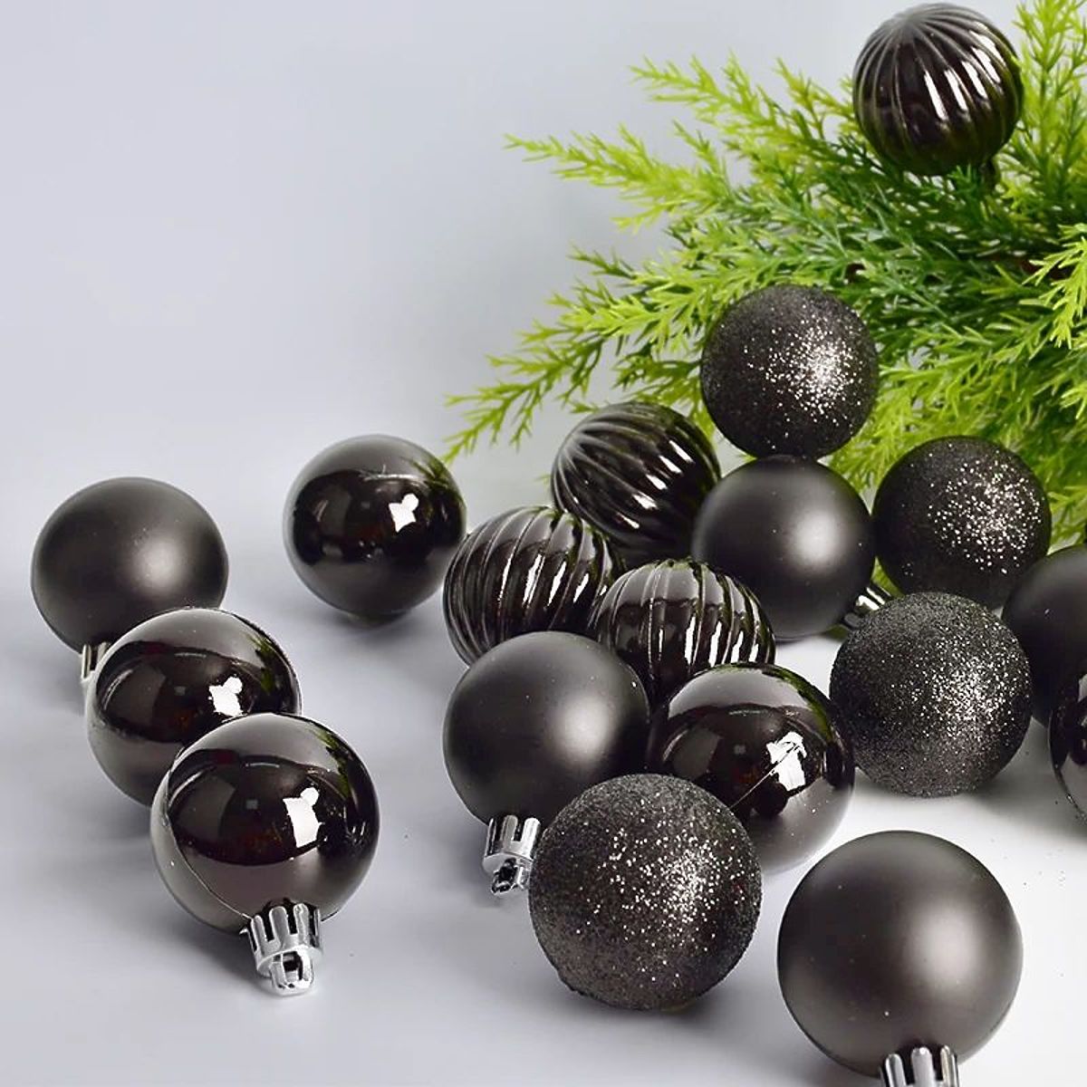 Plastic Christmas balls with various finishes for a magical tree. .. more