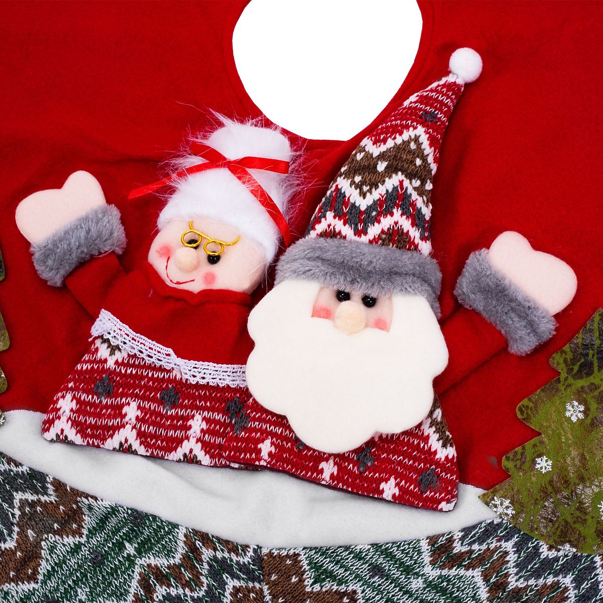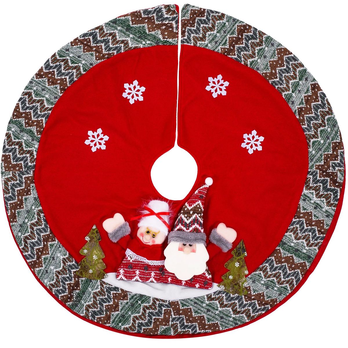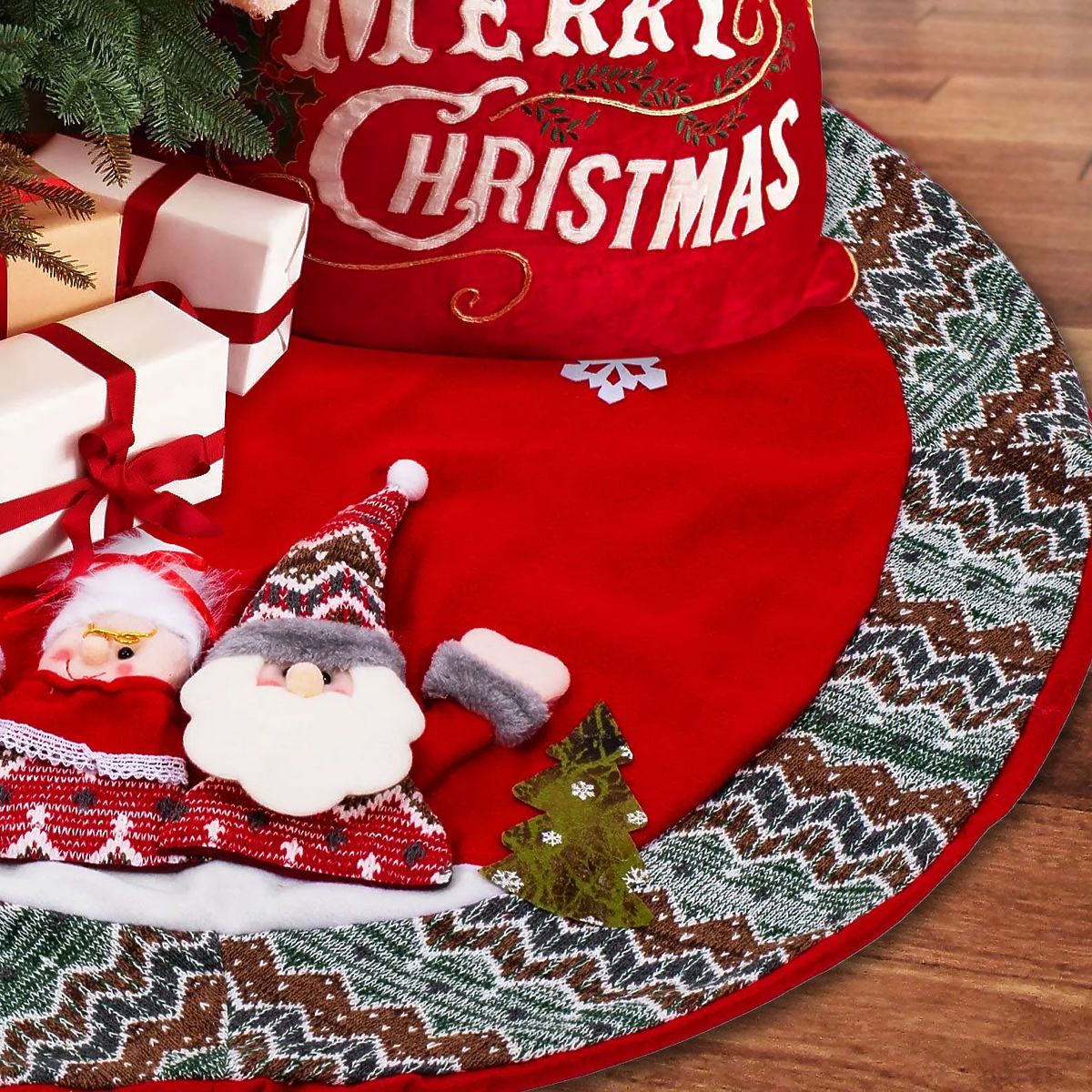 We present to you an exceptionally stylish red tree skirt. It is perfect for both real and artificial trees. Besides its obvious aesthetic value, it helps maintain cleanliness under a real tree. Simply shake off the fallen needles and place the decoration back under the tree.