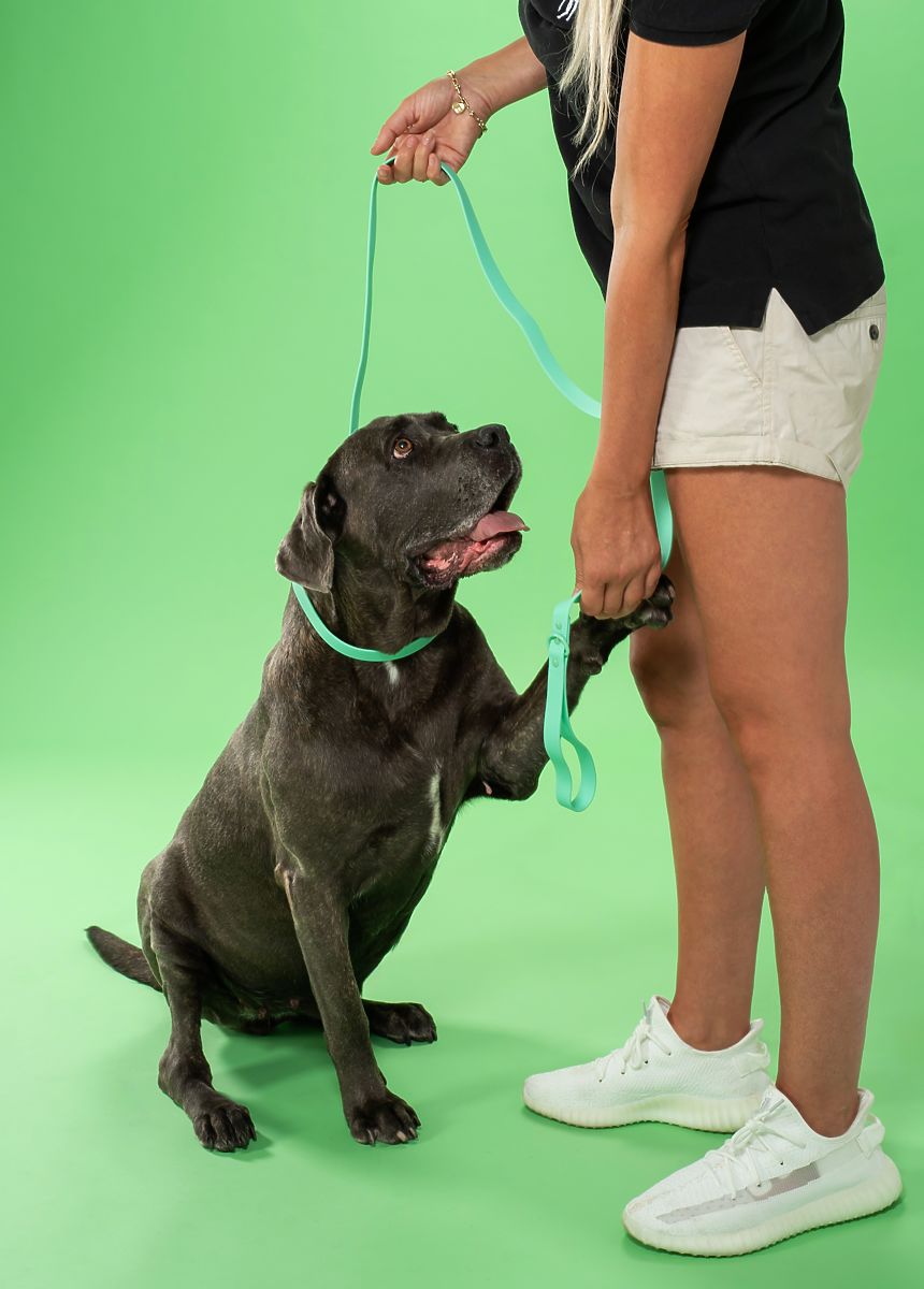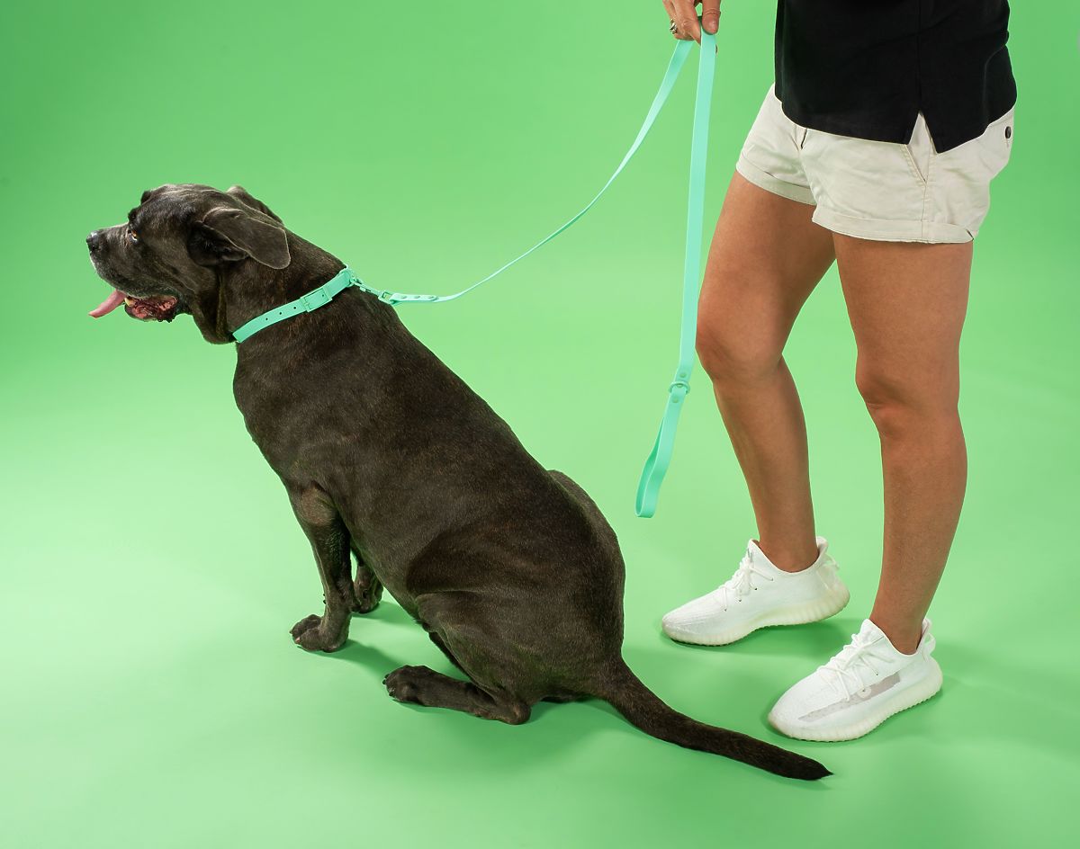 Durable dog leash and collar set in green. .. more