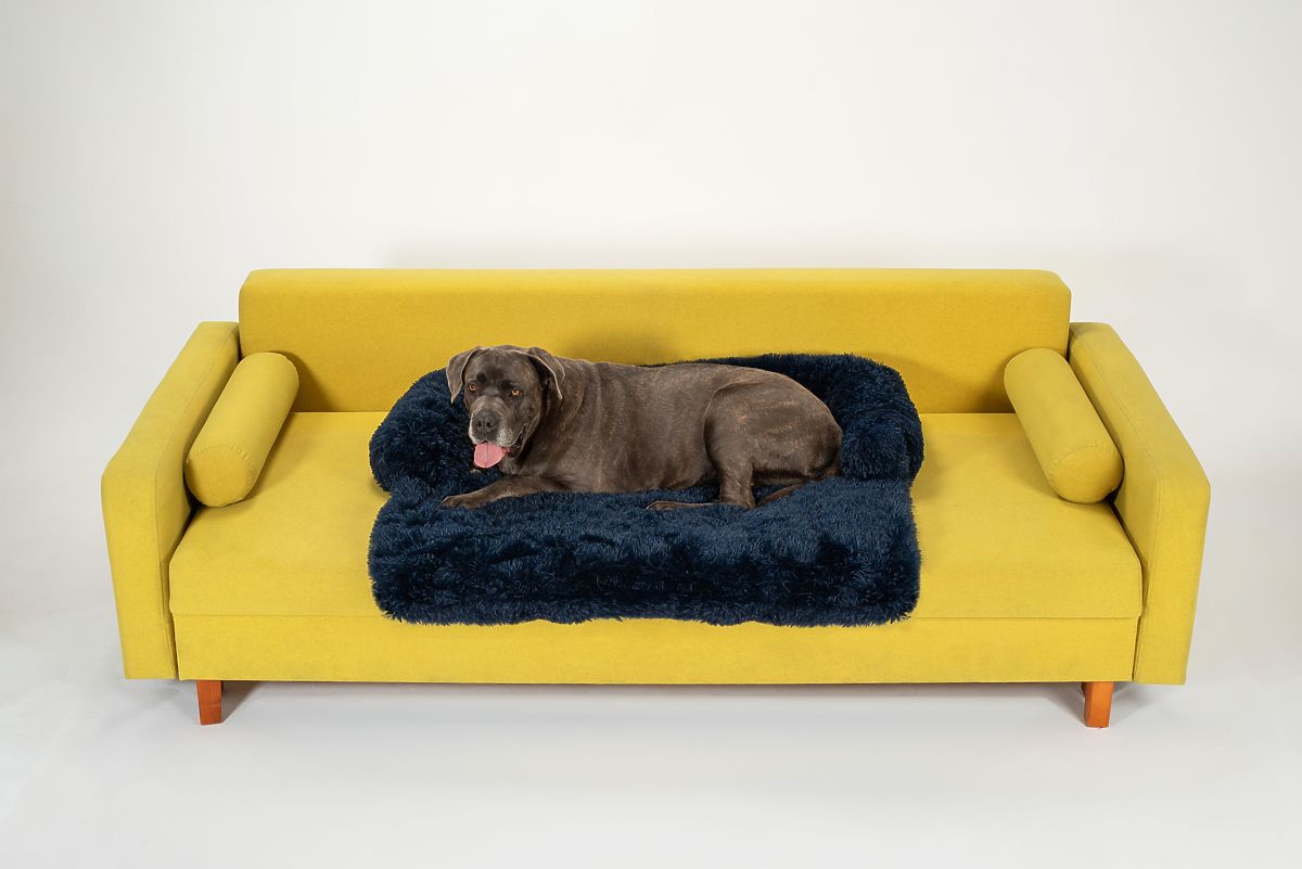 Durable and comfortable dark blue dog bed for sofa. .. more
