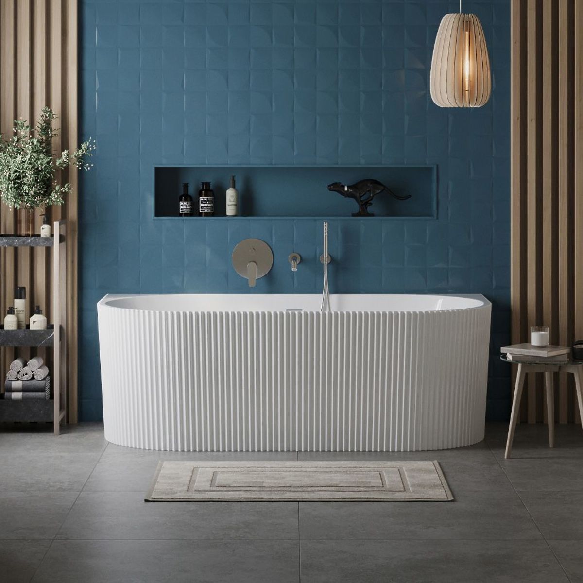 A beautiful and exceptionally functional bathtub that perfectly fills your bathroom space while maintaining a flawless appearance and interior aesthetics. The unique ribbed texture gives the bathtub an original look. The bathtub is designed for wall-mounted installation anywhere in the bathroom. It is made of durable acrylic that is resistant to damage and scratches. Thanks to a special manufacturing process, it is durable and easy to keep clean.