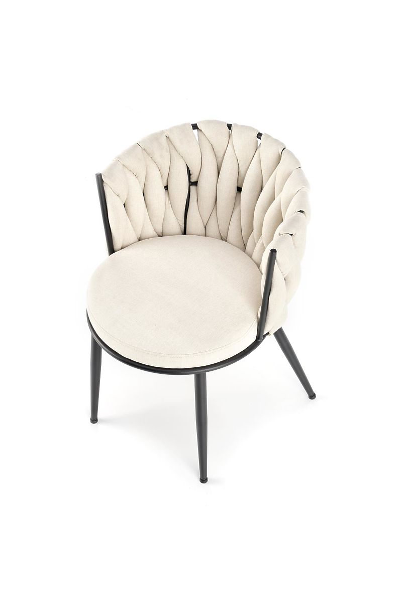 Light beige chair with fabric and powder-coated steel. .. more