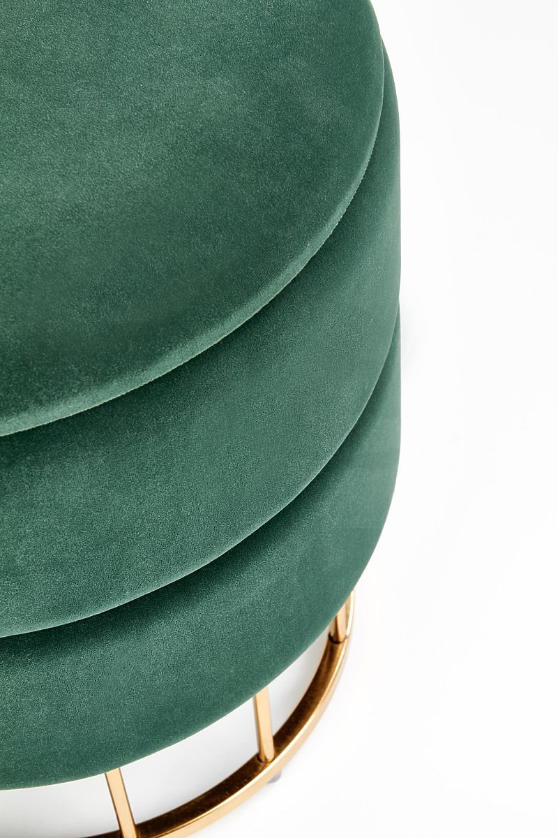 Dark green and gold pouf with fabric and chrome steel. .. more