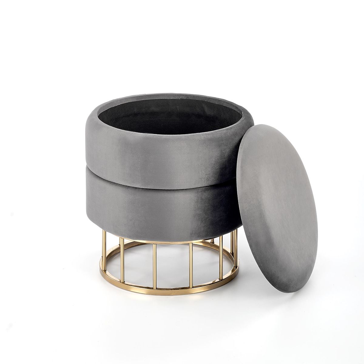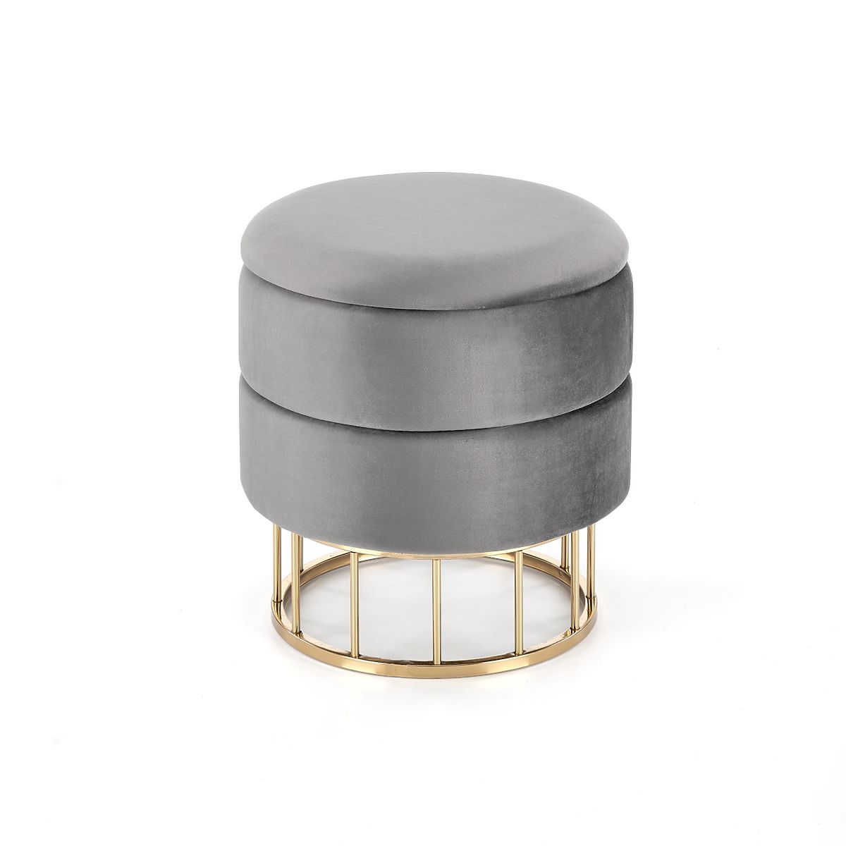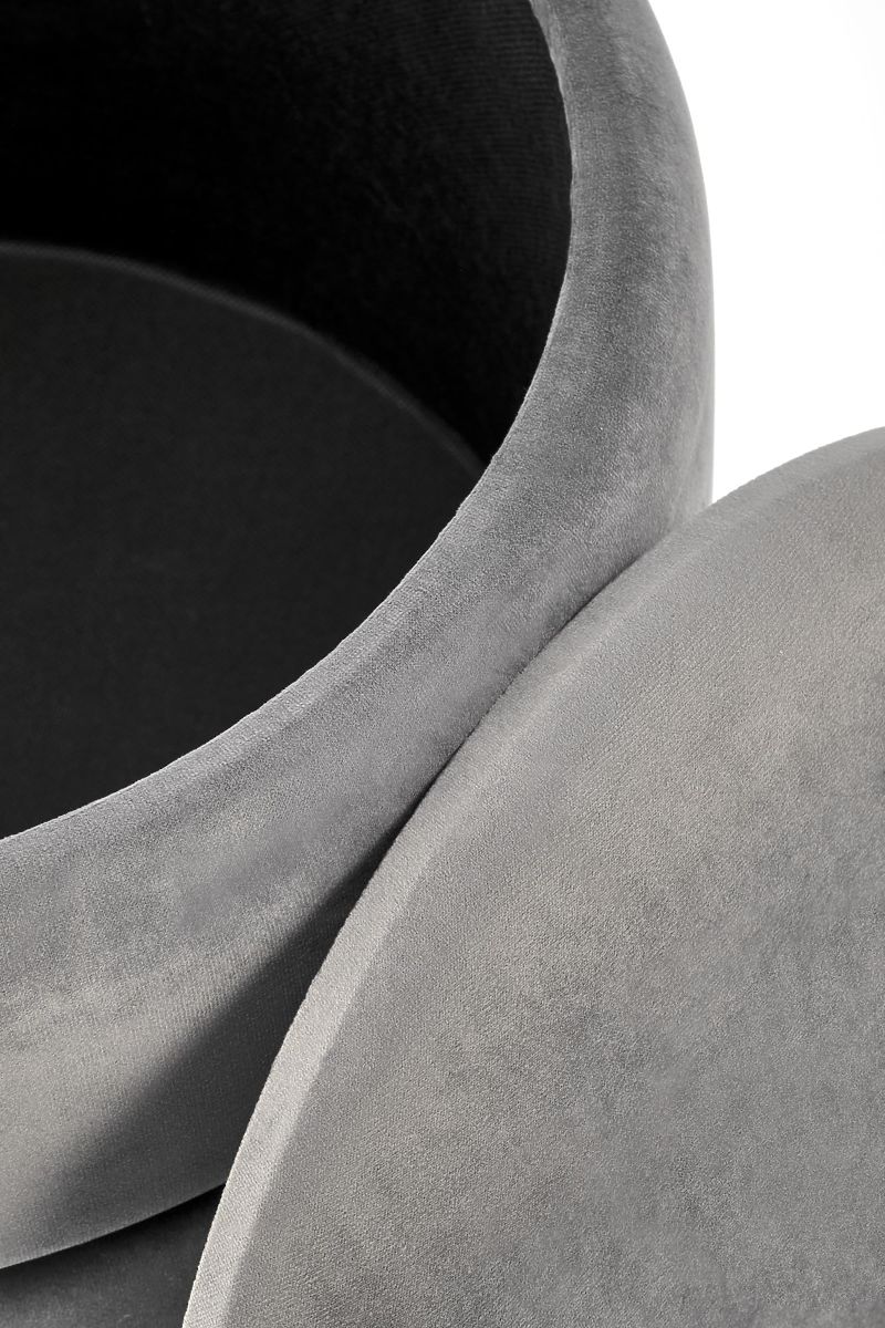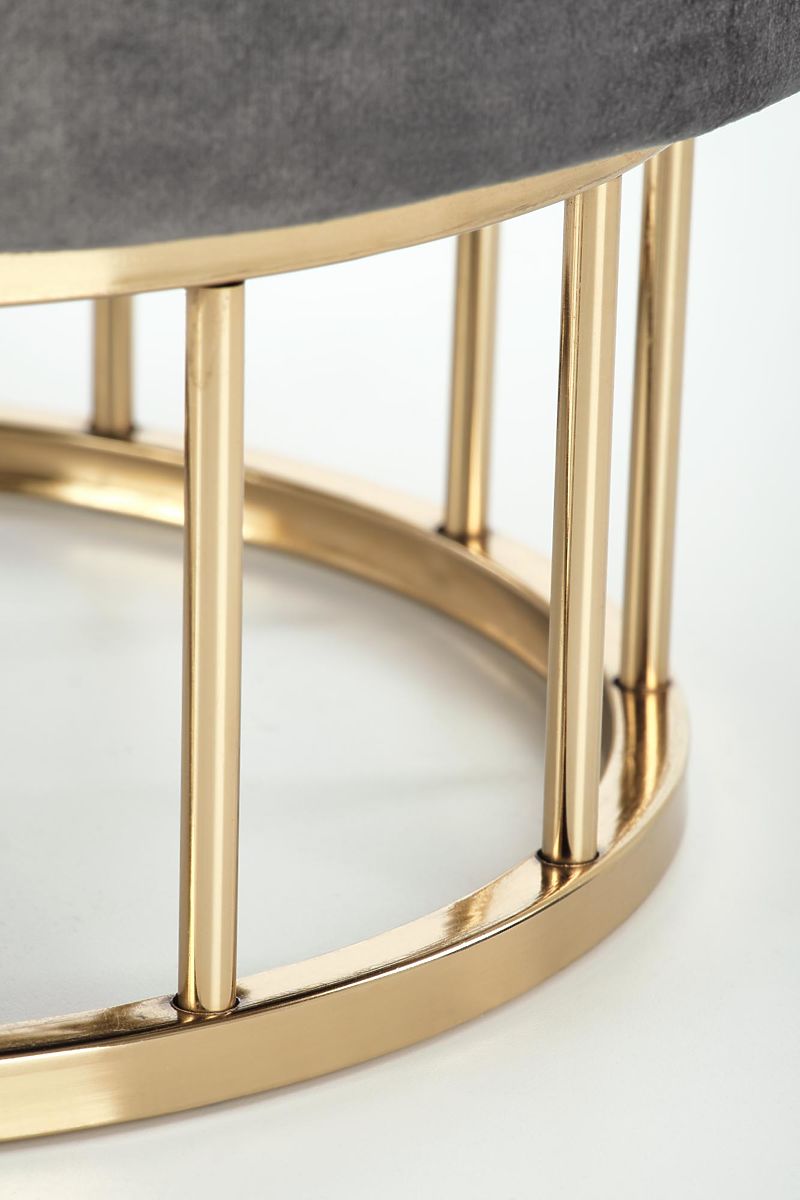 Gray and gold pouf made of fabric and chrome steel. .. more