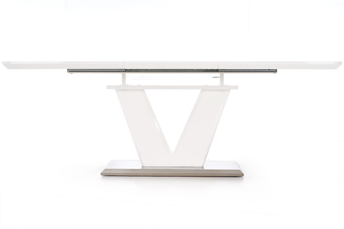 The neutral, elegant white color and modern shape allow easy matching with dining chairs from our offer and complement any interior. The table's extending mechanism allows for lengthening, comfortably accommodating more guests.