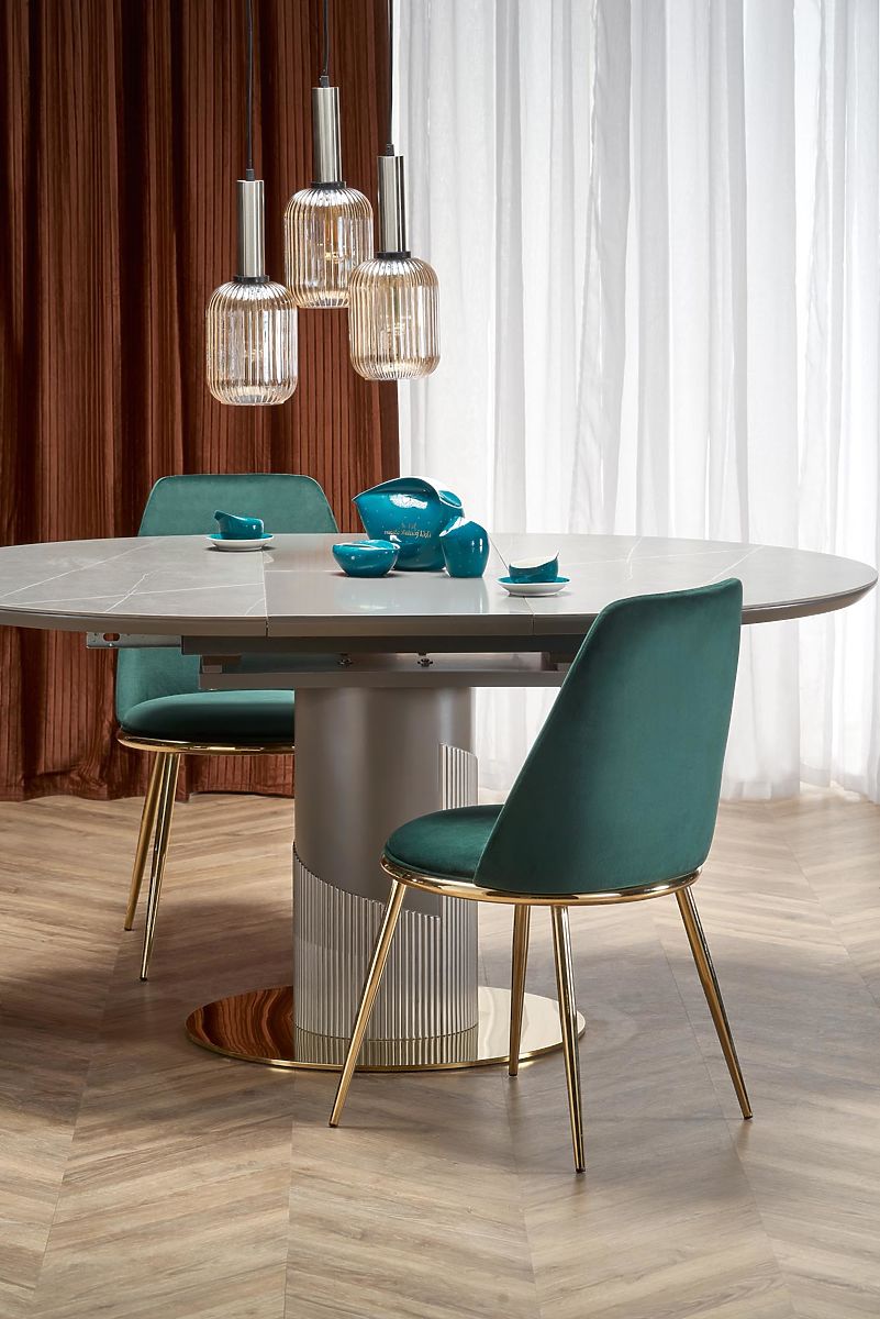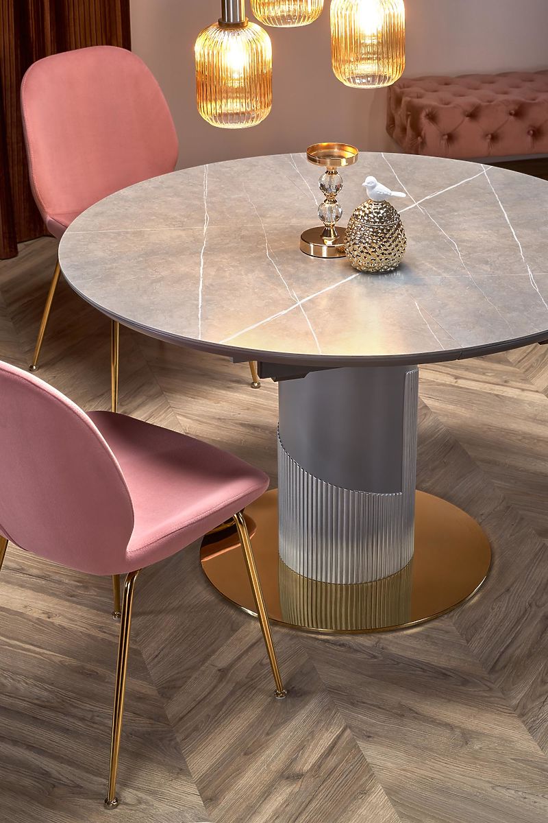 Lukahome.eu » Dining room and kitchen / Dining tables / MUSCAT Extendable Table Top - Grey Marble, Leg - Light Grey / Gold