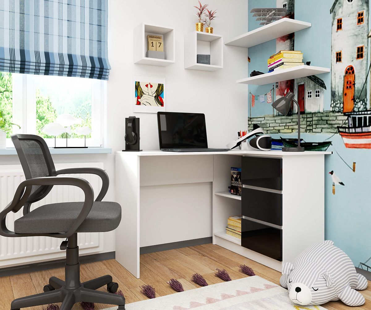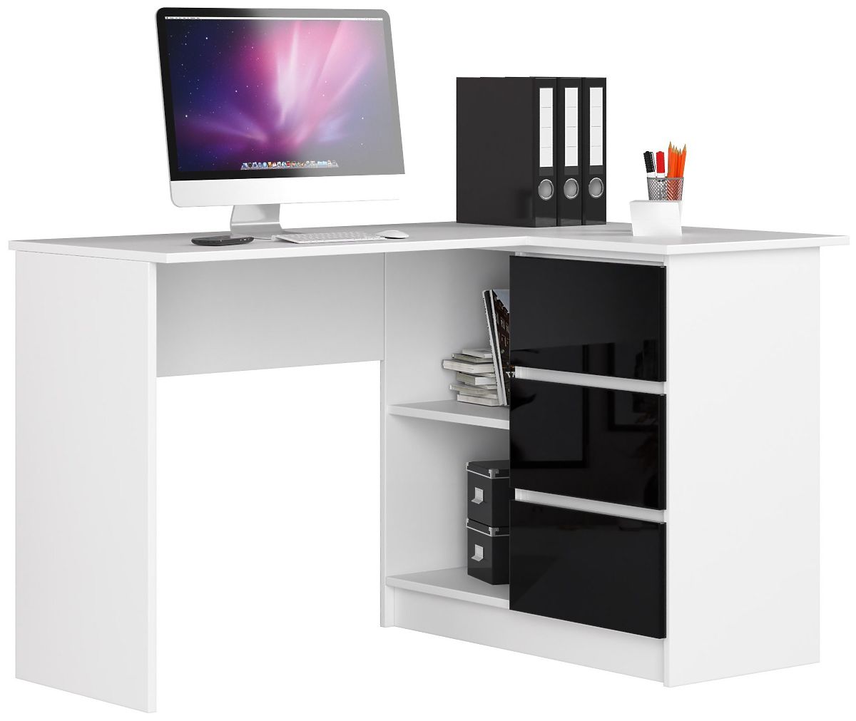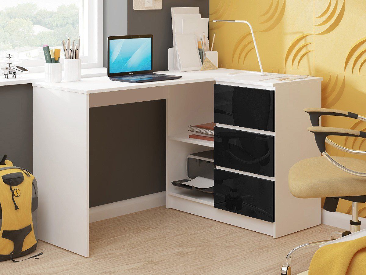 Lukahome.eu » Tables a tables / Writing tables / CORNER DESK B16 124 cm RIGHT 3 DRAWERS WHITE / BLACK GLOSS