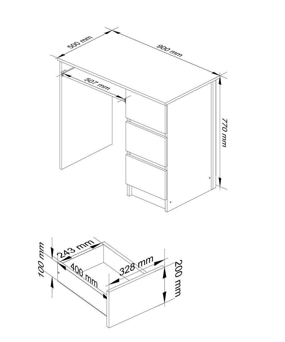 The presented desk is made of laminated board with a thickness of 16 millimeters. It is highly resistant to abrasion and possible damage.