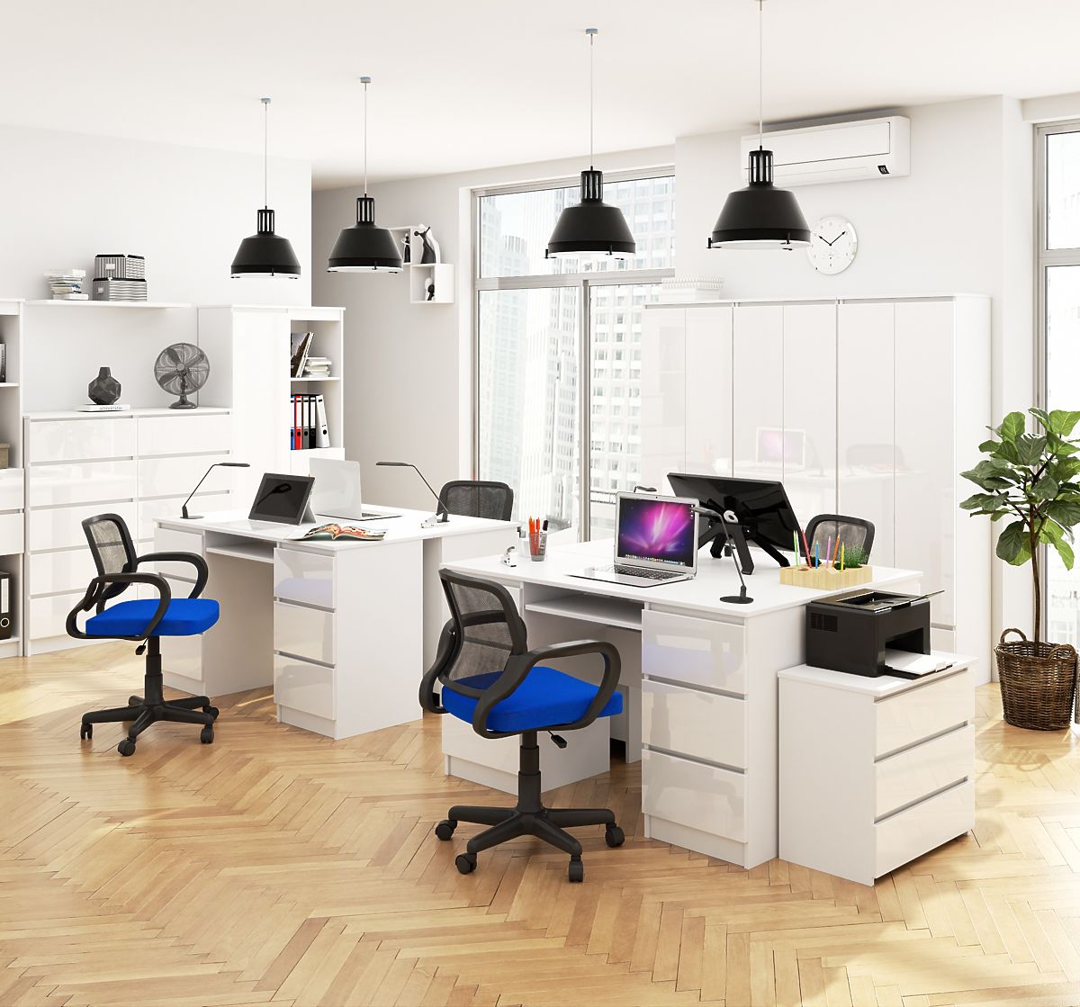 Lukahome.eu » Tables a tables / Writing tables / COMPUTER DESK A-11 135 cm 6 DRAWERS PK WHITE / WHITE GLOSS
