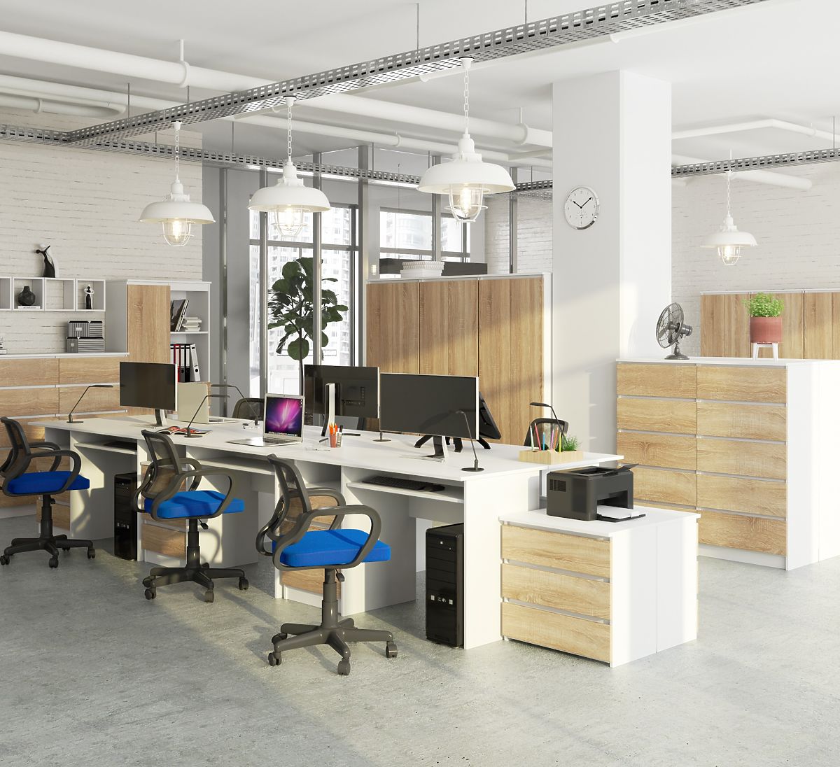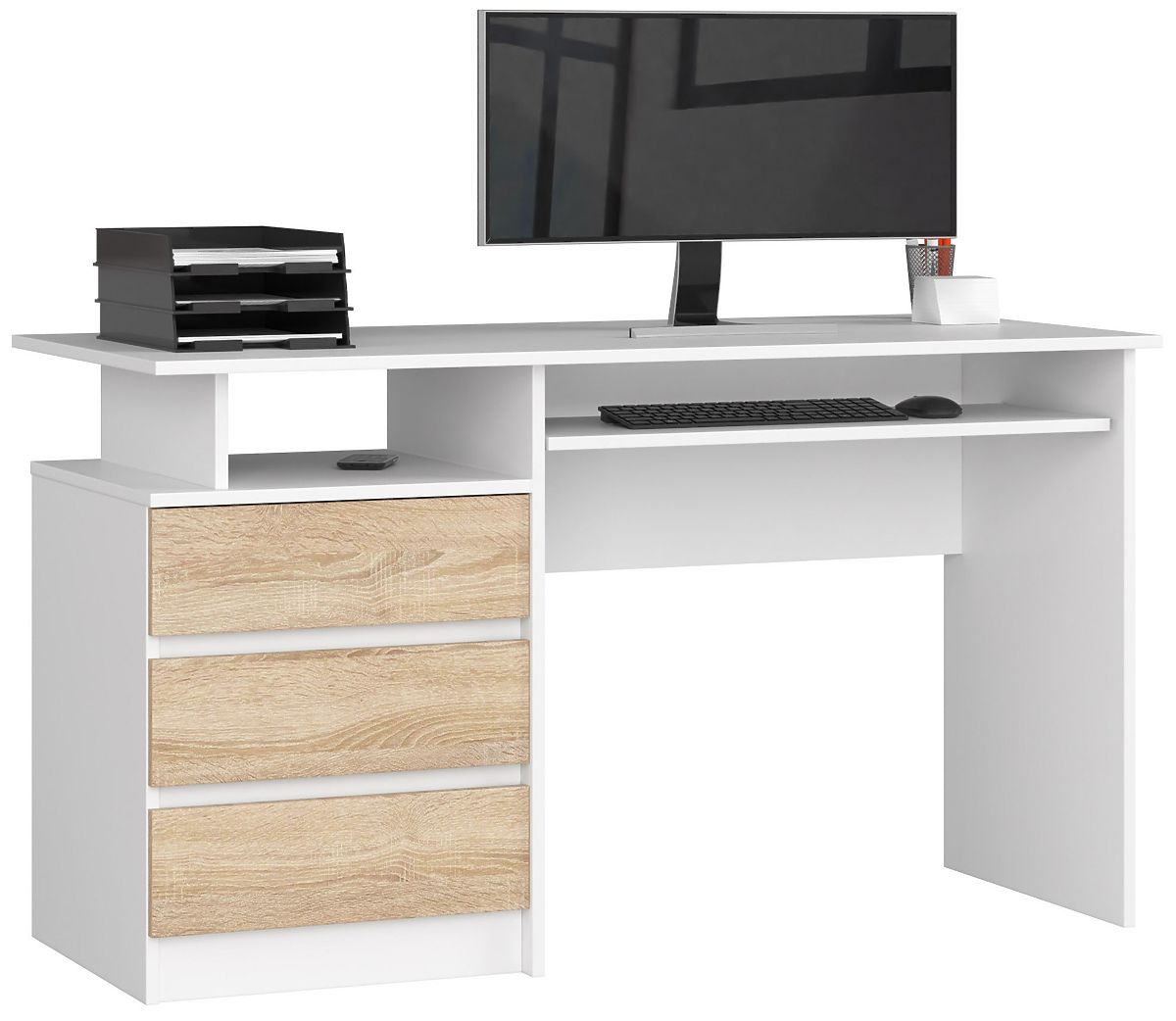 Desk with white body and sonoma oak fronts, 135cm wide. .. more