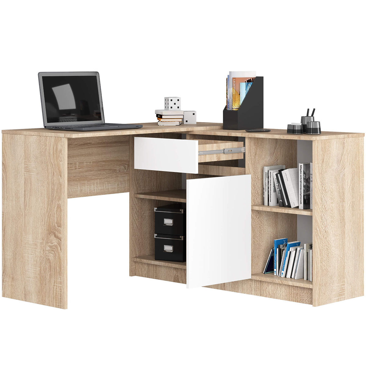 Versatile corner desk set with commode, adaptable for both right and left-handed use. .. more