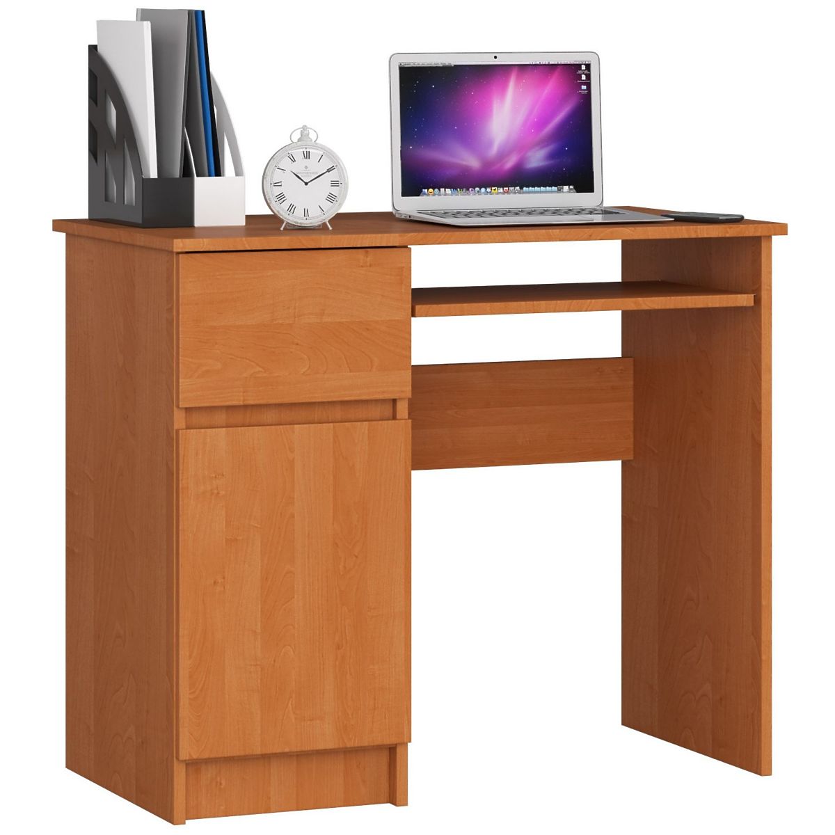 The Piksel desk is a small desk with a large amount of space for essential school items. Thanks to the door, it can hold plenty of notebooks and books. The desk is 90 cm long and is perfect for small and medium-sized rooms.