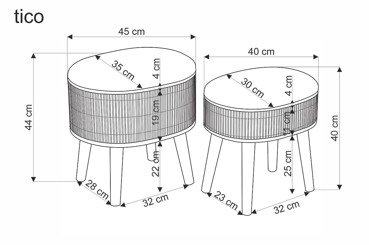 Set of two stoolsTICO offers an elegant and practical solution for both modern and cozy interiors. With its gentle oval shape, natural wood, and beige upholstery, it exudes harmony and timelessness, easily becoming a stylish addition to the living room, bedroom, or hallway. The stools are upholstered in pleasant fabric in a beige shade, adding warmth and softness to the space. The stable construction made of solid rubberwood in a natural finish ensures strength and long-lasting durability. Each stool is also equipped with a practical storage space, ideal for storing blankets, pillows, small items, or home accessories. Thanks to their different sizes, the stools can be used individually or combined practically according to current needs. They serve excellently as additional seating, a footrest, or a decorative element in the interior. They are delivered in a disassembled state for easy handling.